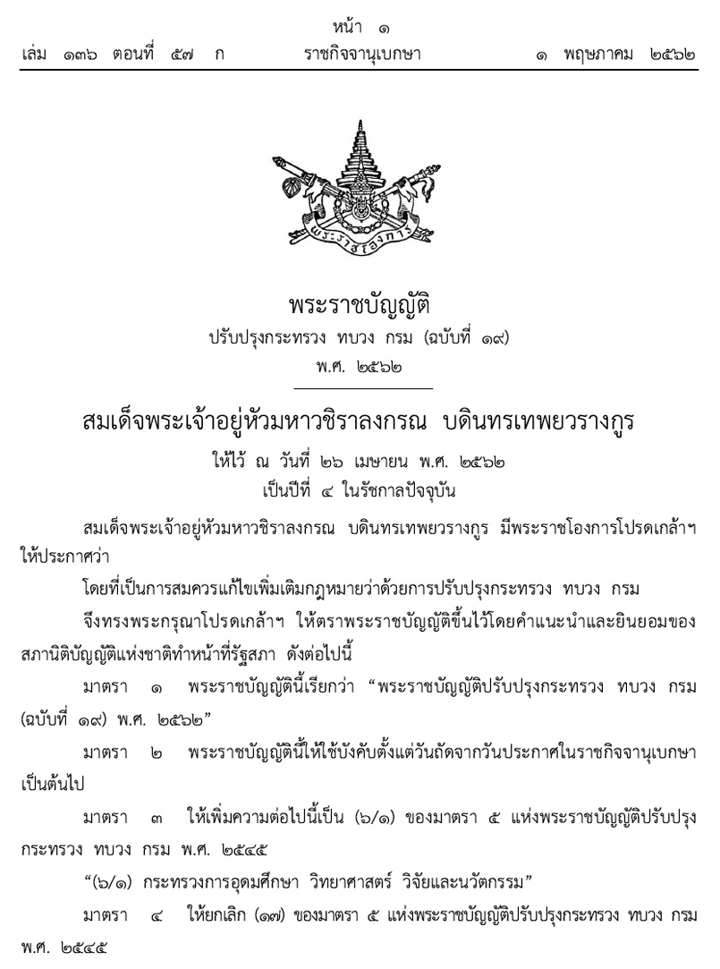 ที่มา ราชกิจจานุเบกษา วันที่ 1 พฤษภาคม 2562
