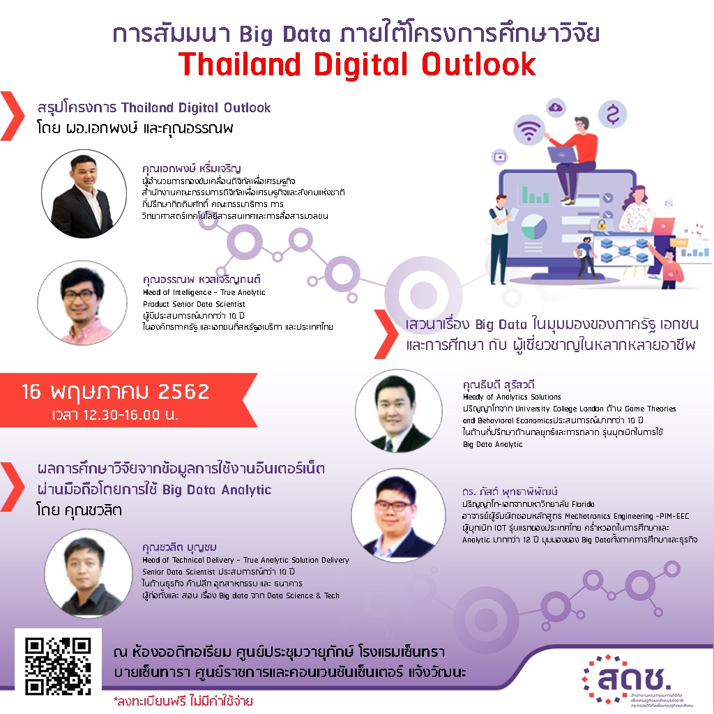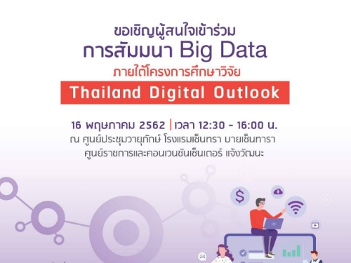ขอเชิญผู้ที่สนใจ เข้าร่วมสัมมนา Big Data ภายใต้โครงการศึกษาวิจัย Thailand Digital Outlook วันที่ 16 พ.ค.2562 นี้