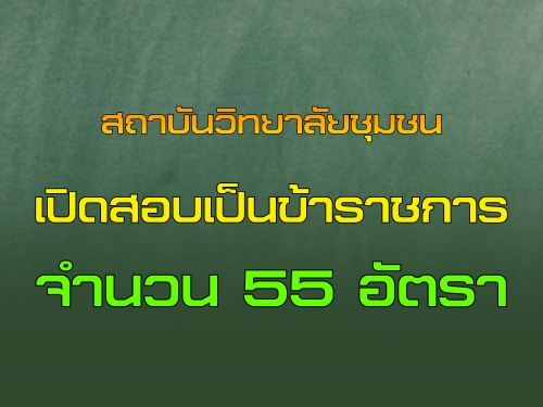 นายวีระชัย กวีธีระวัฒน์ ผู้อำนวยการสถาบันวิทยาลัยชุมชน (สวชช.) เปิดเผยว่า สวชช.เปิดรับสมัครสอบแข่งขันเพื่อบรรจุ และแต่งตั้งบุคคลเข้ารับราชการเป็นข้าราชการพลเรือนในสถาบันอุดมศึกษา สวชช. ตำแหน่งครูผู้ช่วย จำนวน 55 อัตรา คุณวุฒิปริญญาโท ดังนี้