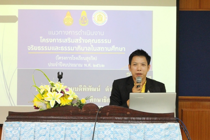 วันที่ 21 กรกฎาคม 2562 เวลา 09.00 น. ณ ห้องประชุมเจ้าสามพระยา สพป.ชัยนาท ว่าที่พันตรีสมเกียรติ แก้วทอง รอง ผอ.สพป.ชัยนาท เป็นประธานเปิดการอบรมเชิงปฏิบัติการโครงการเสริมสร้างคุณธรรม จริยธรรมและธรรมาภิบาลในสถานศึกษา ประจำปีงบประมาณ 2562 (กิจกรรมโรงเรียนสุจริต) โดยวัตถุประสงค์ เพื่อเสริมสร้างคุณธรรม จริยธรรมและธรรมาภิบาลในสถานศึกษา “ป้องกันการทุจริต” เพื่อปลูกฝังนักเรียนให้มีทักษะกระบวนการคิด มีวินัย ซื่อสัตย์สุจริต อยู่อย่างพอเพียง และมีจิตสาธารณะ ครูผู้เข้ารับการอบรม ครูผู้รับผิดชอบโครงการโรงเรียนสุจิต จำนวน 174 คน ตามที่สำนักงานคณะกรรมการการศึกษาขั้นพื้นฐาน ได้จัดทำหลักสูตรต้านทุจริตศึกษา รายวิชาเพิ่มเติม “การป้องกันการทุจริต” ขึ้น และคณะรัฐมนตรี มีมติเห็นชอบ เมื่อวันที่ 22 พฤษภาคม 2561 ให้หน่วยงานที่เกี่ยวข้องนำหลักสูตรต้านทุจริต ไปปรับใช้ในการจัดการเรียนการสอนในสถานศึกษา ในการนี้ สำนักงานเขตพื้นที่การศึกษาประถมศึกษาชัยนาท ได้ดำเนินการจัดอบรมเชิงปฏิบัติการ การนำหลักสูตรต้านทุจริตศึกษาสู่การปฏิบัติในสถานศึกษา ให้แก่ ผู้บริหารโรงเรียนและครูวิชาการโรงเรียนทุกแห่งในสังกัด รวม 350 คน เมื่อวันที่ 26 พฤษภาคม ๒๕๖๒ เพื่อไปขยายผลให้แก่ครูและบุคลากรในสถานศึกษา โดยมีคู่มือการใช้หลักสูตรต้านทุจริตศึกษา เป็นแนวทางในการจัดการเรียนรู้ และประยุกต์ใช้ให้เหมาะสมตามบริบทของสถานศึกษา เพื่อเป็นแนวทางในการดำเนินกิจกรรมสุจริตให้กับสถานศึกษา โดยมุ่งเน้นการสร้างความรู้ ความเข้าใจที่ถูกต้องเกี่ยวกับความหมายและขอบเขตของการกระทำทุจริตในลักษณะต่างๆ ทั้งทางตรงและทางอ้อม ความเสียหายที่เกิดจากการทุจริต ความสำคัญของการต่อต้านการทุจริต รวมทั้งจัดให้มีการประเมินผลสัมฤทธิ์ของการจัดทำหลักสูตรในแต่ละช่วงวัยของผู้เรียนด้วย