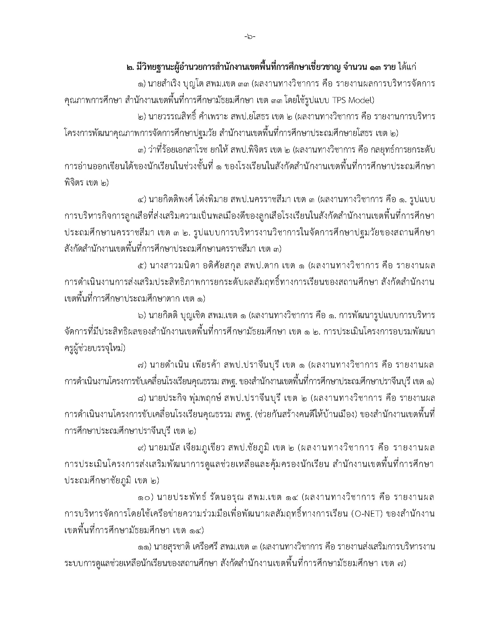 เลขาธิการ ก.ค.ศ. เปิดเผยว่าในการประชุม อ.ก.ค.ศ. วิสามัญเกี่ยวกับวิทยฐานะข้าราชการครู และบุคลากรทางการศึกษา ครั้งที่ 8/2562 เมื่อวันพฤหัสบดีที่ 19 กันยายน 2562 ได้มีมติอนุมัติให้ข้าราชการครู และบุคลากรทางการศึกษามีและเลื่อนเป็นวิทยฐานะเชี่ยวชาญ จํานวน 38 ราย ได้แก่ วิทยฐานะครูเชี่ยวชาญ จํานวน 20 ราย วิทยฐานะผู้อํานวยการเชี่ยวชาญ จํานวน 1 ราย วิทยฐานะผู้อํานวยการสํานักงาน กศน. จังหวัดเชี่ยวชาญ จํานวน 4 ราย และวิทยฐานะผู้อํานวยการสํานักงานเขตพื้นที่การศึกษาเชี่ยวชาญ จํานวน 13 ราย ดังนี้
