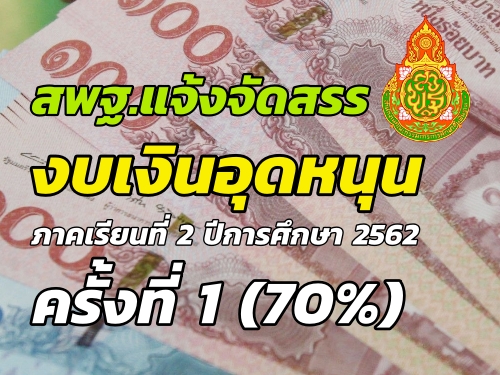 สำนักงานคณะกรรมการการศึกษาขั้นพื้นฐานจัดสรรงบประมาณรายจ่ายประจำปีงบประมาณ พ.ศ. 2563 กิจกรรมการสนับสนุนค่าใช้จ่าย ในการจัดการศึกษาขั้นพื้นฐาน งบเงินอุดหนุน ภาคเรียนที่ 2 ปีการศึกษา 2562 ครั้งที่ 1 (70%) รายละเอียด ดังนี้