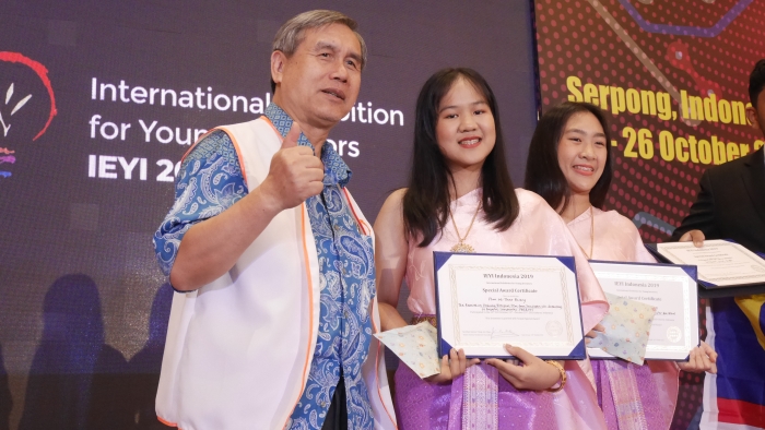 วันที่ 25 ตุลาคม 2562 ดร.อโณทัย ไทยวรรณศรี ผู้อำนวยการสำนักพัฒนานวัตกรรมการจัดการศึกษา สำนักงานคณะกรรมการการศึกษาขั้นพื้นฐาน เปิดเผยว่า ตามที่สำนักงานคณะกรรมการการศึกษาขั้นพื้นฐาน (สพฐ.) ได้ส่งคณะนักเรียนไทยเข้าร่วมการจัดแสดงและประกวดผลงานสิ่งประดิษฐ์ทางวิทยาศาสตร์ ระดับนานาชาติ ในงาน International Exhibition for Young Inventors (IEYI 2019) ระหว่างวันที่ 22 - 26 ตุลาคม จังหวัดบันเติน สาธารณรัฐอินโดนีเซีย โดยมีนักเรียนเข้าร่วมการแข่งขันจำนวน 9 ทีม รวม 17 คน ซึ่งจากการตัดสินของคณะกรรมการ มีผลการแข่งขันปรากฏว่า มีนักเรียนได้รับรางวัลครบทุกทีม แบ่งเป็น เหรียญทอง 3 รางวัล เหรียญเงิน 6 รางวัล และ Special Awards 7 รางวัล ดังนี้