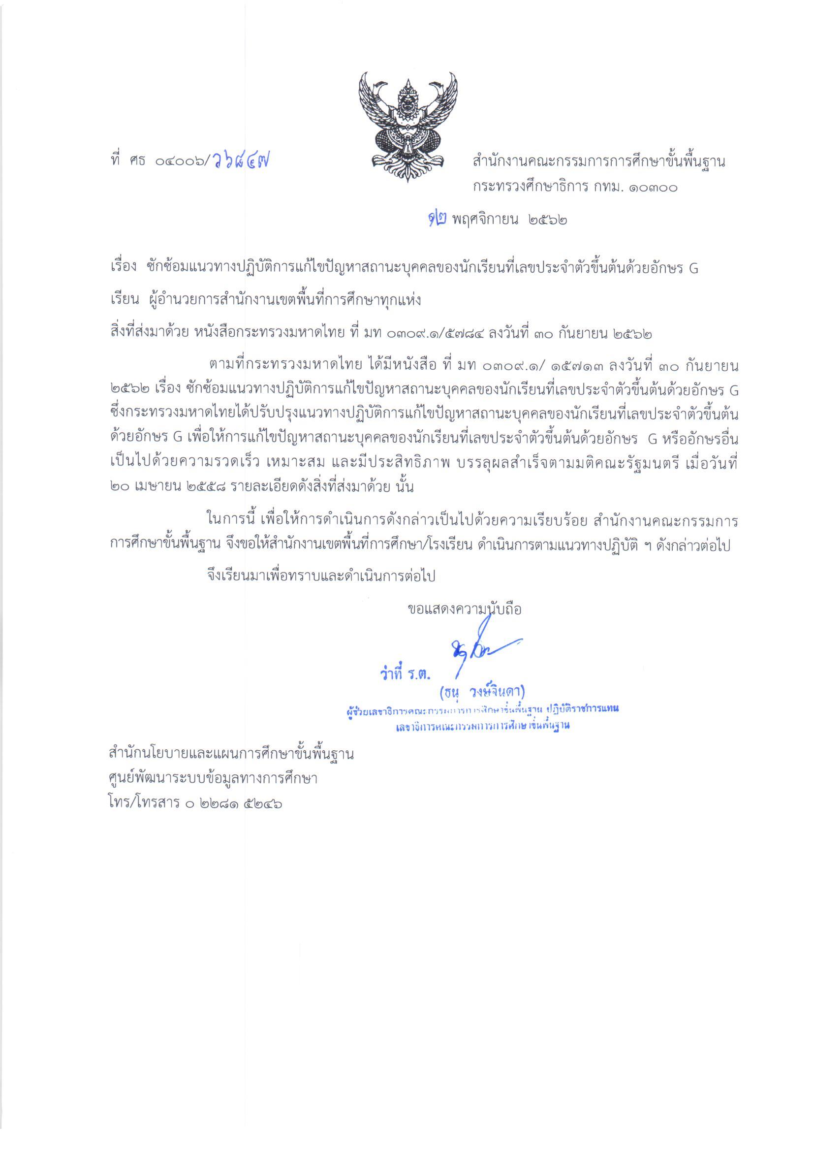 ซักซ้อมแนวทางปฏิบัติการแก้ไขปัญหาสถานะบุคคลของนักเรียนที่เลขประจำตัวขึ้นต้นด้วยอักษร G