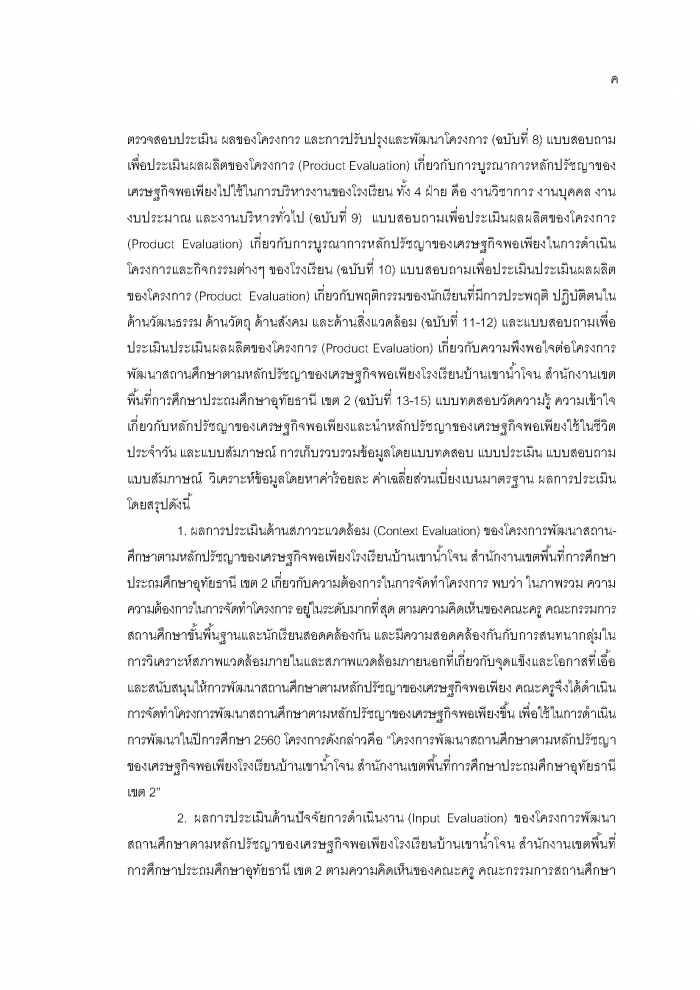 รายงานการประเมินโครงการพัฒนาสถานศึกษาตามหลักปรัชญาของเศรษฐกิจพอเพียง โรงเรียนบ้านเขาน้ำโจน สำนักงานเขตพื้นที่การศึกษาประถมศึกษาอุทัยธานี เขต 2 : นางจินตนา คำสอนจิก