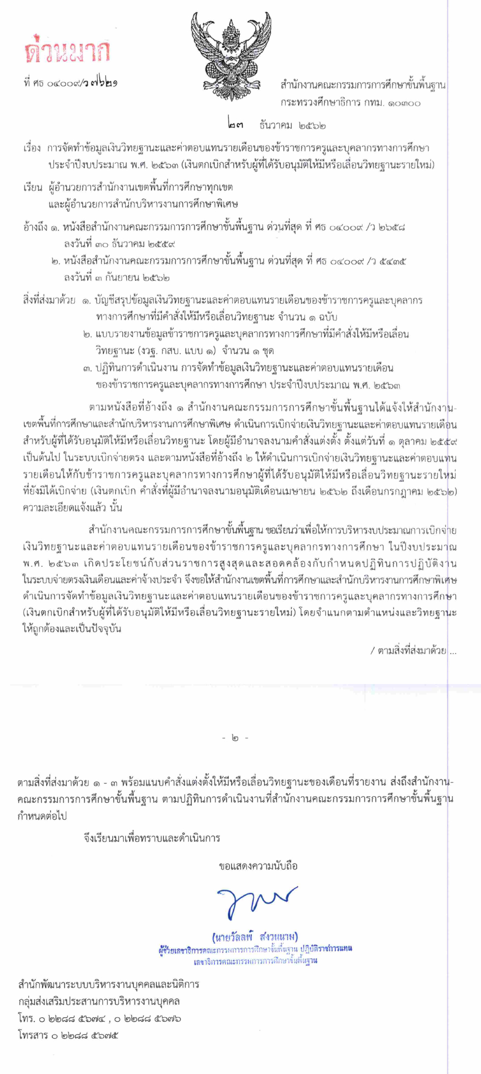ด่วนมาก ว 7621,ว 7622 เรื่อง การจัดทำข้อมูลเงินวิทยฐานะและค่าตอบแทนรายเดือนของข้าราชการครูและบุคลากรทางการศึกษา ประจำปีงบประมาณ พ.ศ. 2563 (เงินตกเบิกสำหรับผู้ที่ได้รับอนุมัติให้มีหรือเลื่อนวิทยฐานะรายใหม่)