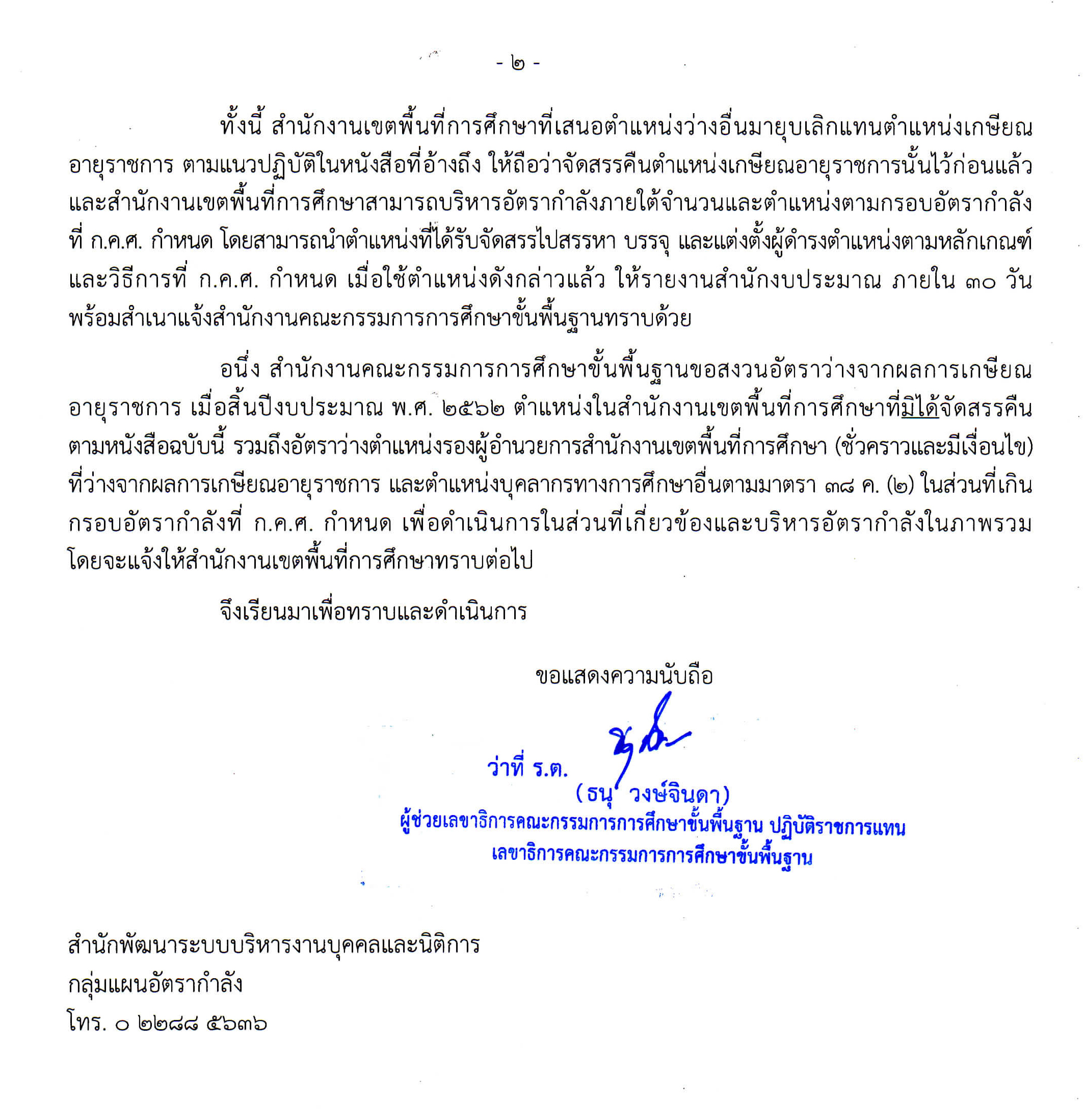 การจัดสรรอัตราว่างข้าราชการครูและบุคลากรทางการศึกษาในสำนักเขตพื้นที่การศึกษา