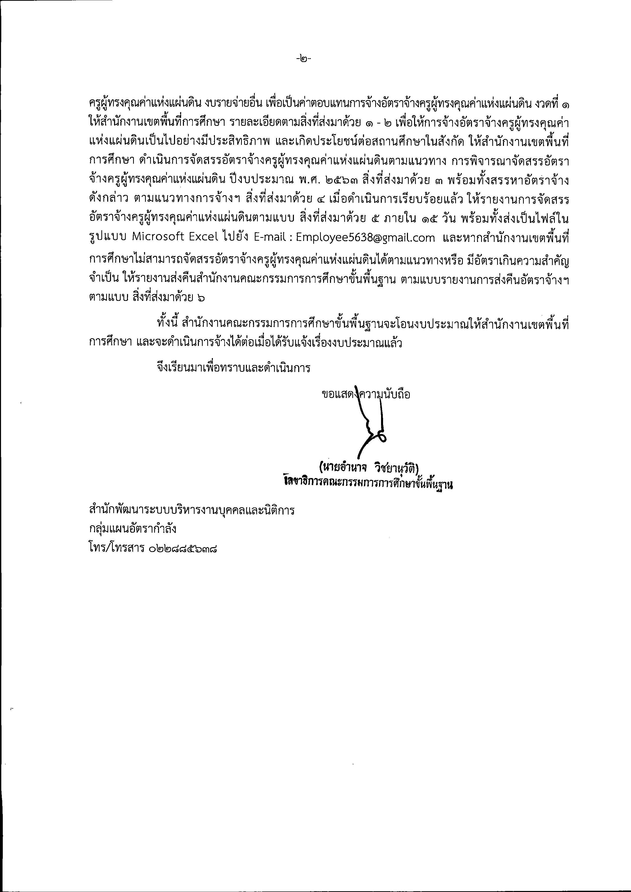 การจัดสรรงบประมาณรายจ่ายปี พ.ศ. 2563 (งบประมาณปี พ.ศ. 2562 ไปพลางก่อน) เพื่อเป็นค่าตอบแทนการจ้างอัตราจ้างครูผู้ทรงคุณค่าแห่งแผ่นดิน งวดที่ 1