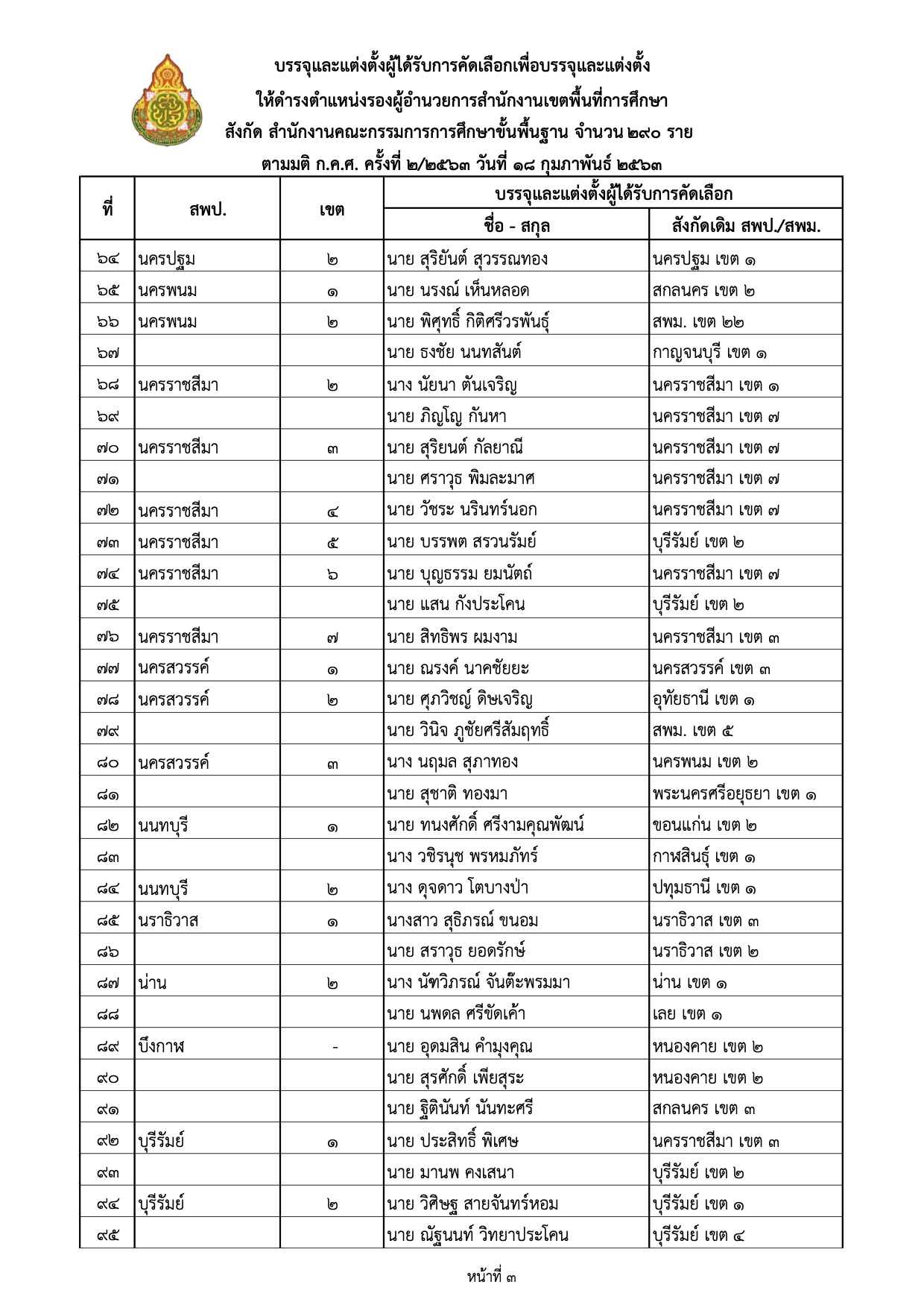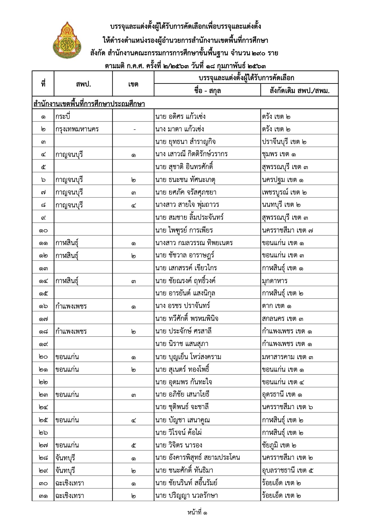 สำนักงานคณะกรรมการการศึกษาขั้นพื้นฐาน บรรจุและแต่งตั้งผู้ได้รับการคัดเลือกให้ดำรงตำแหน่งรองผู้อำนวยการสำนักงานเขตพื้นที่การศึกษา