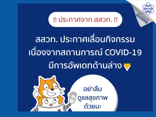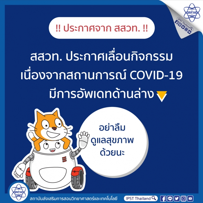 เนื่องด้วยสถานการณ์โรคติดเชื้อไวรัสโคโรนา 2019 (COVID-19) เพื่อความปลอดภัยของทุกท่าน สสวท. จึงประกาศเลื่อนกิจกรรมดังต่อไปนี้ รายละเอียดในลิงก์ (แอดมินจะคอยอัพเดทรายชื่อกิจกรรมอย่างต่อเนื่อง หากสงสัยว่ากิจกรรมที่ท่านมีส่วนร่วมจะได้รับผลกระทบหรือไม่ กรุณา save post นี้ไว้เพื่อติดตามข่าว)