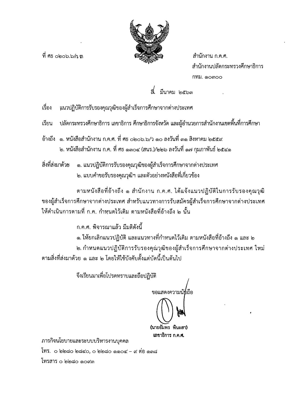 ว 3/2563 แนวปฏิบัติรับรองคุณวุฒิของผู้สำเร็จการศึกษาจากต่างประเทศ