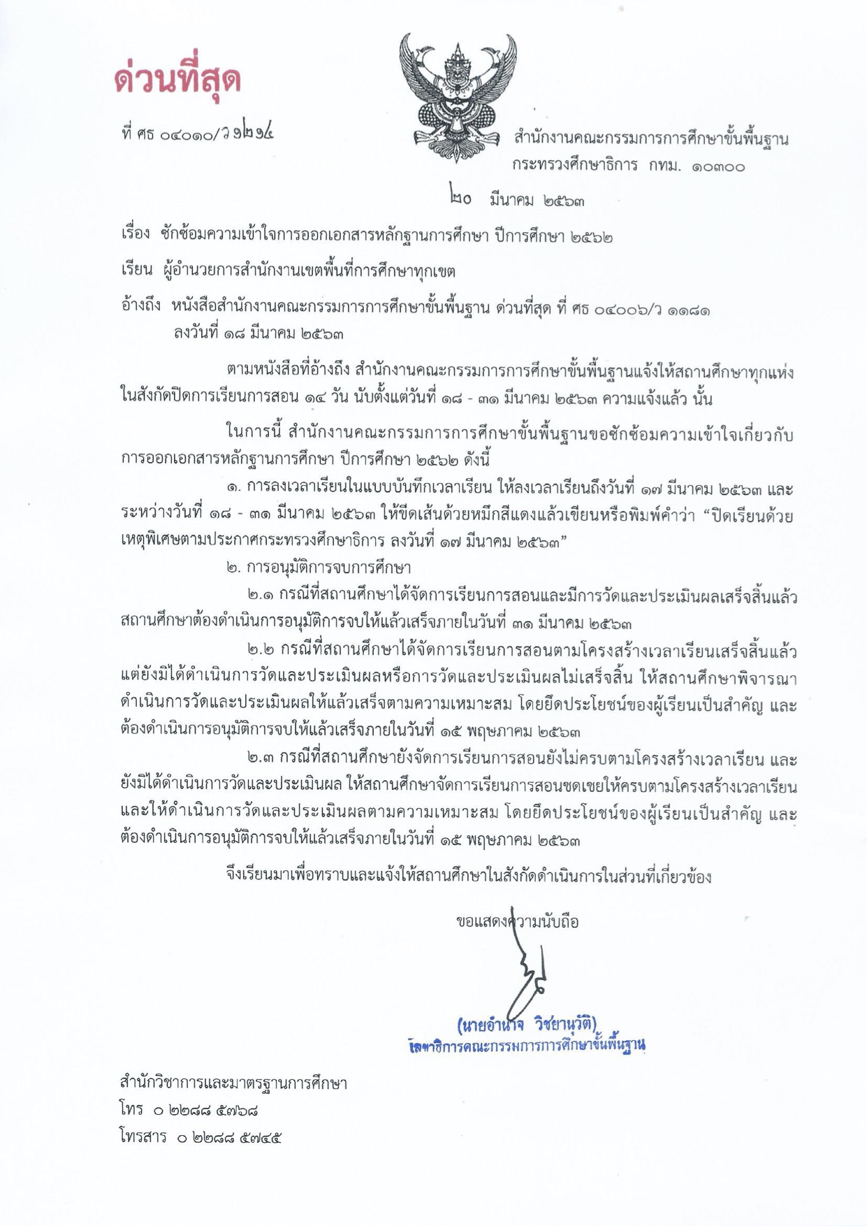 หนังสือที่ ศธ 04010/ว 1214 ลว 20 มีนาคม 2563
