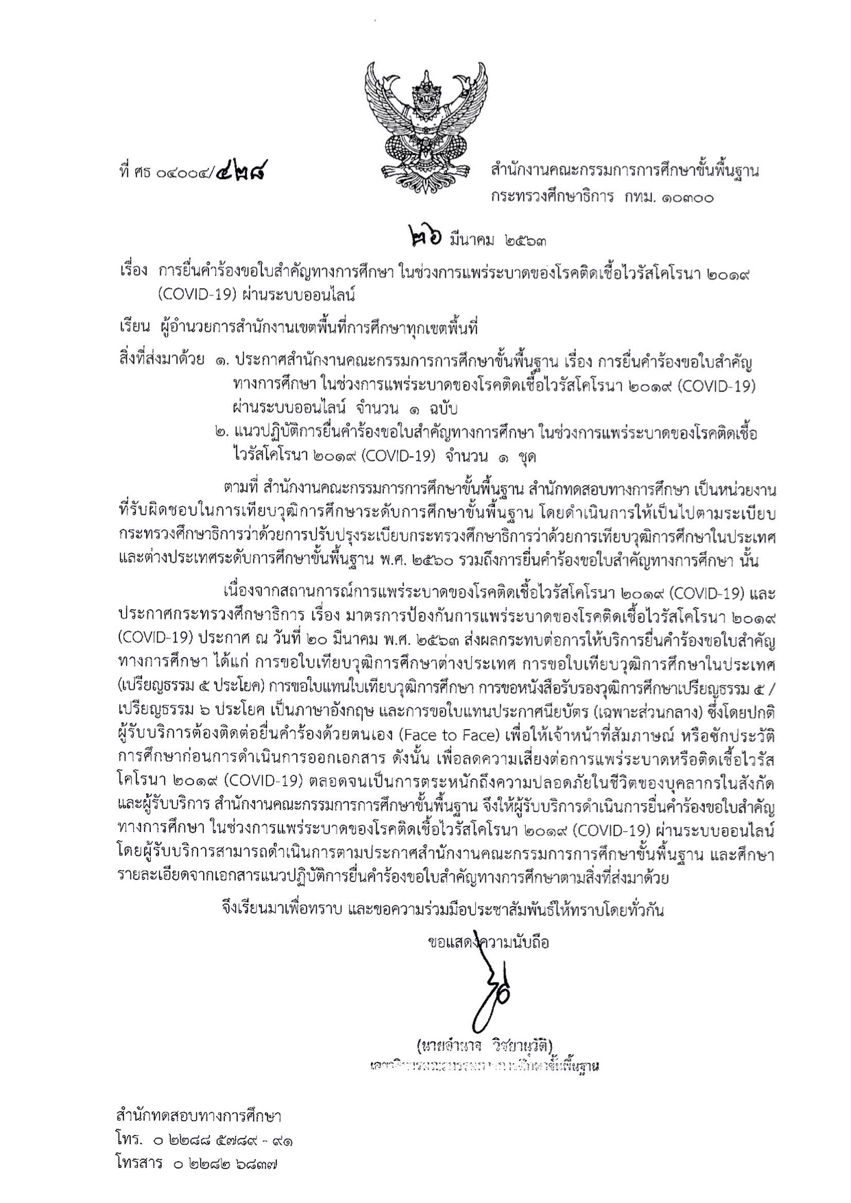 การยื่นคำร้องขอใบสำคัญทางการศึกษาในช่วงการแพร่ระบาดของโรคติดเชื้อไวรัสโคโรนา 2019