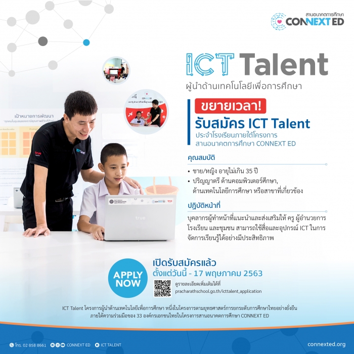 CONNEXT ED ขยายเวลาการเปิดรับสมัคร ICT Talent (เจ้าหน้าที่ ICT) ประจำโรงเรียนภายใต้โครงการสานอนาคตการศึกษา CONNEXT ED