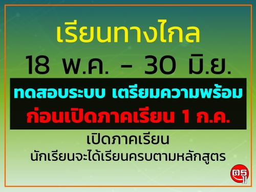 เรียนทางไกล 18 พ.ค. - 30 มิ.ย. ทดสอบระบบ เตรียมความพร้อม ก่อนเปิดภาคเรียน 1 ก.ค. เปิดภาคเรียน นักเรียนจะได้เรียนครบตามหลักสูตร