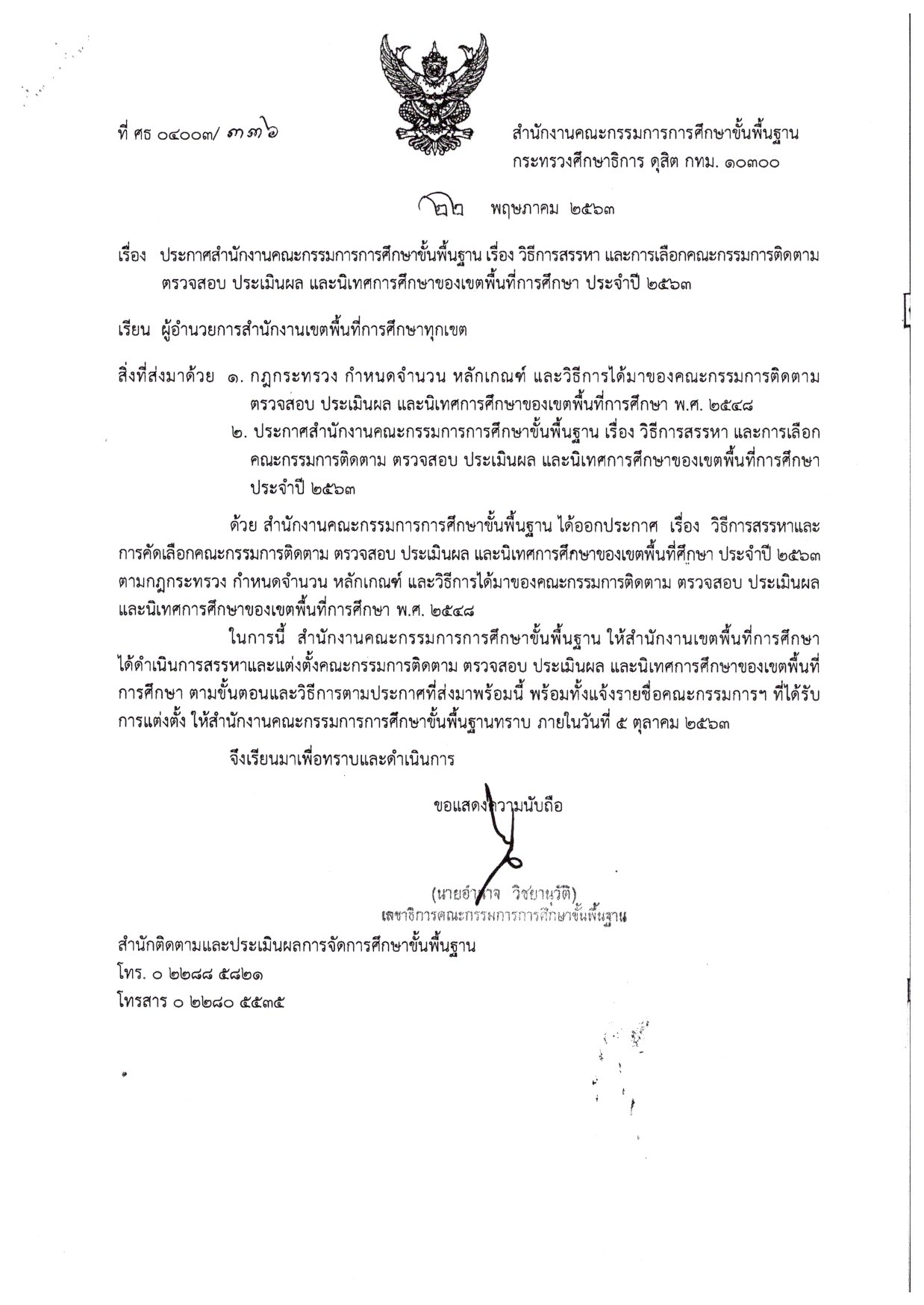 ประกาศสำนักงานคณะกรรมการการศึกษาขั้นพื้นฐาน เรื่อง วิธีการสรรหา และการเลือกคณะกรรมการติดตาม ตรวจสอบ ประเมินผล และนิเทศการศึกษาของเขตพื้นที่การศึกษา