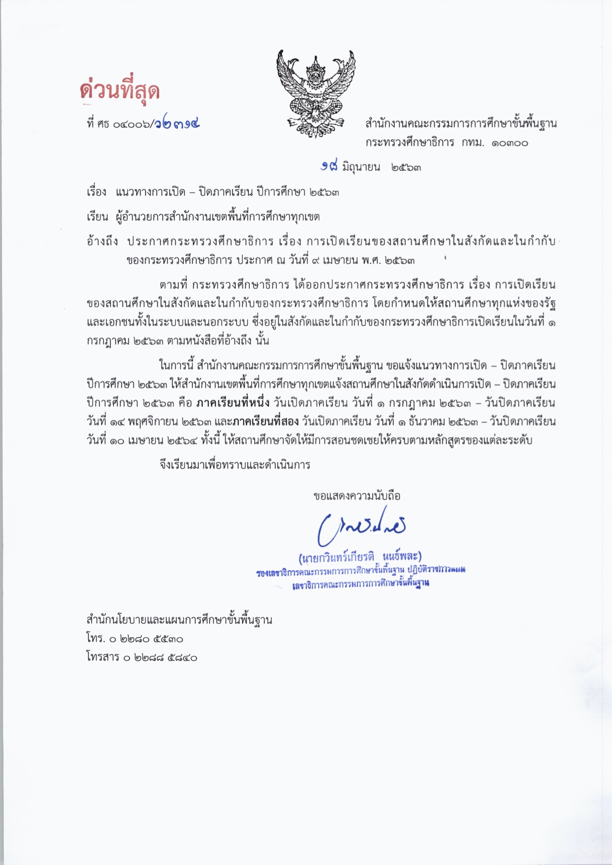 สำนักงานคณะกรรมการการศึกษาขั้นพื้นฐาน มีหนังสือแจ้ง เรื่อง แนวทางการเปิด-ปิดภาคเรียน ปีการศึกษา 2563 รายละเอียด ดังนี้