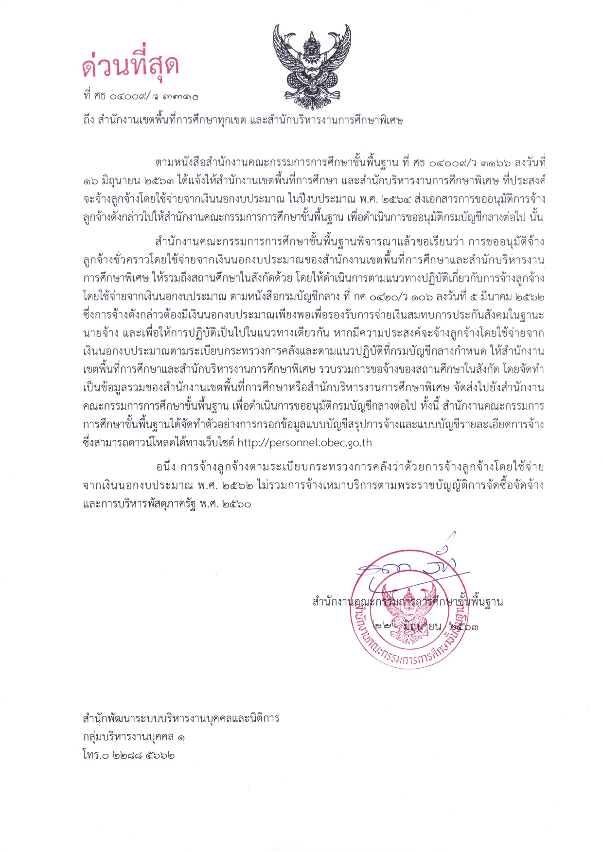 - ว 3310 ซักซ้อมการขออนุมัติจ้างลูกจ้างโดยใช้จ่ายจากเงินนอกงบประมาณ