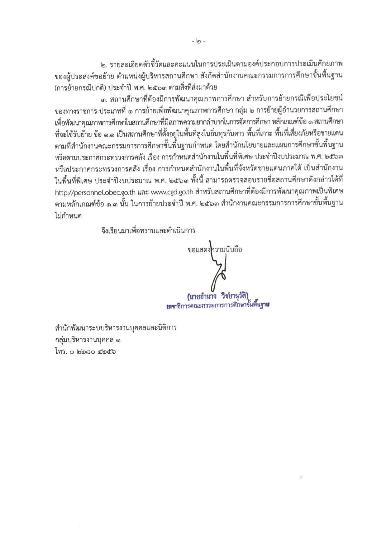 สำนักงานคณะกรรมการการศึกษาขั้นพื้นฐาน มีหนังสือแจ้ง เรื่อง การย้ายผู้บริหารสถานศึกษา สังกัดสํานักงานคณะกรรมการการศึกษาขั้นพื้นฐาน ประจําปี พ.ศ. 2563 โดย อ้างถึง