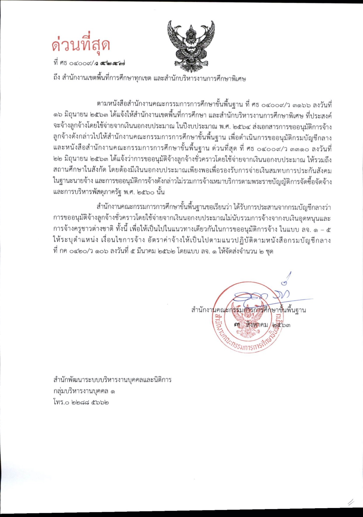 ที่ ศธ 04009/ว 4247การจ้างลูกจ้างชั่วคราวโดยใช้จ่ายเงินนอกงบประมาณ