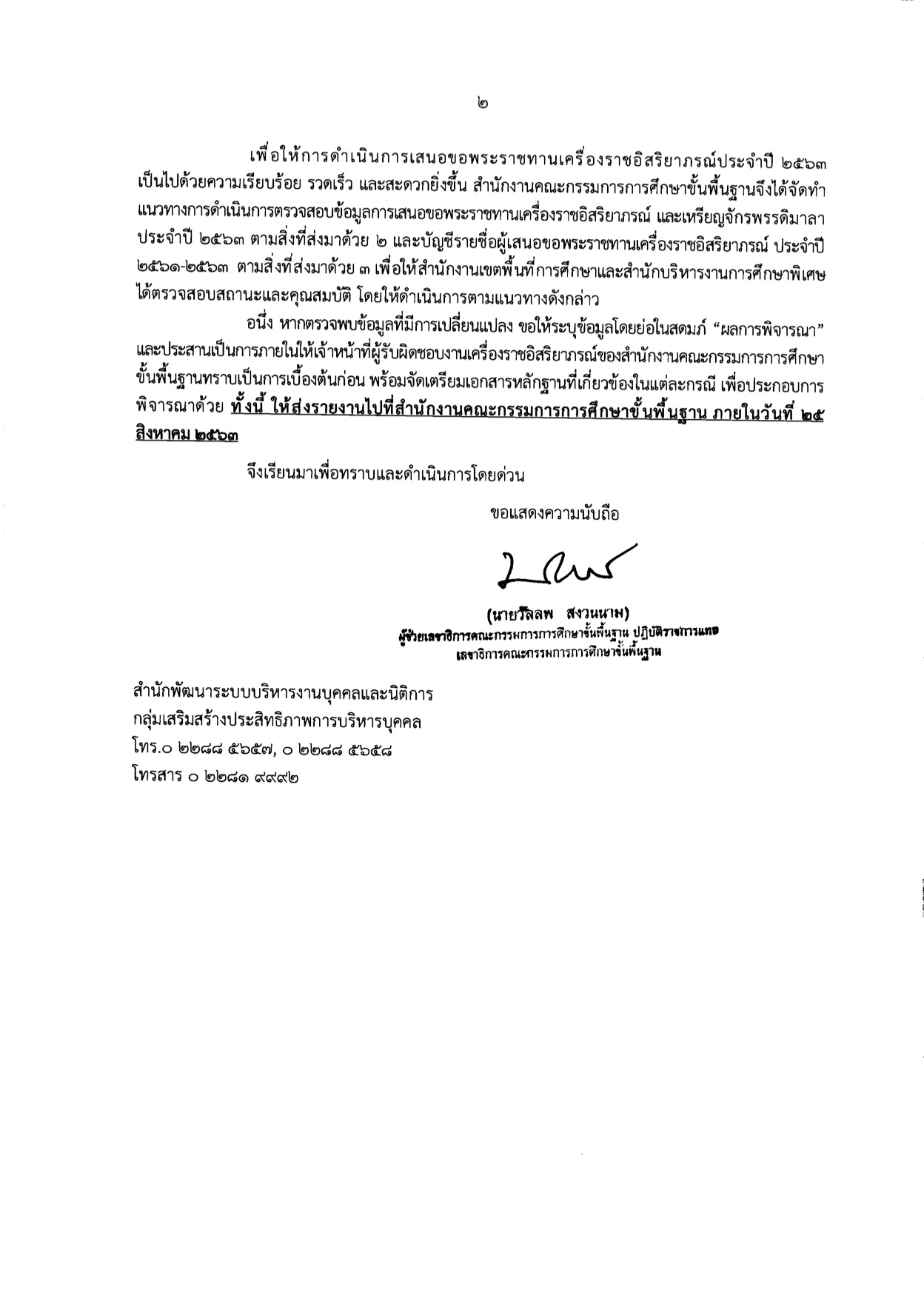 ด่วนที่สุด ที่ ศธ 04009/ว4655 การเสนอขอพระราชทานเครื่องราชอิสริยาภรณ์ประจำปี 2563