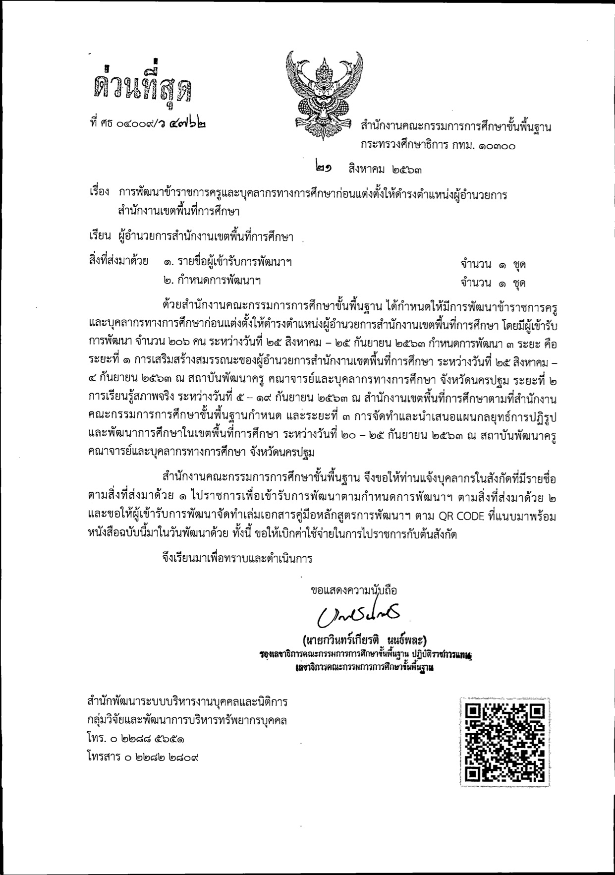 การพัฒนาข้าราชการครูและบุคลากรทางการศึกษาก่อนแต่งตั้งให้ดำรงตำแหน่งผู้อำนวยการสำนักงานเขตพื้นที่การศึกษา