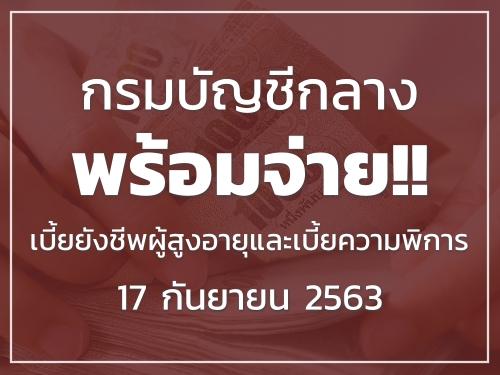 นางสาววิลาวรรณ พยาน้อย รองอธิบดีกรมบัญชีกลาง ในฐานะโฆษกกรมบัญชีกลาง เปิดเผยว่า กรมบัญชีกลางได้โอนเงินเบี้ยยังชีพผู้สูงอายุและเบี้ยความพิการประจำเดือนกันยายน 2563 เข้าบัญชีเงินฝากธนาคาร ให้ผู้มีสิทธิ ในวันพฤหัสบดีที่ 17 กันยายน 2563