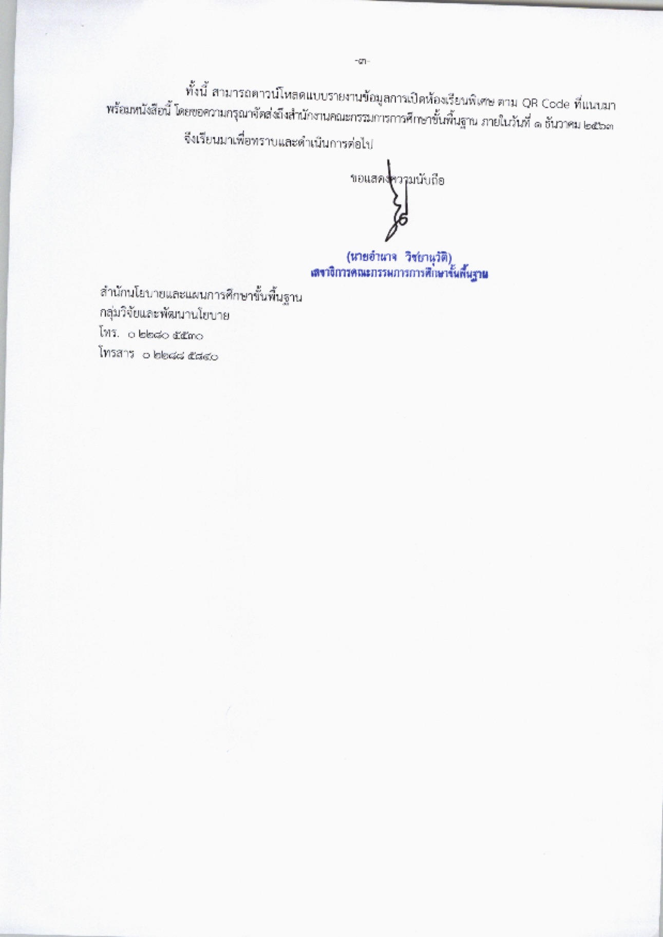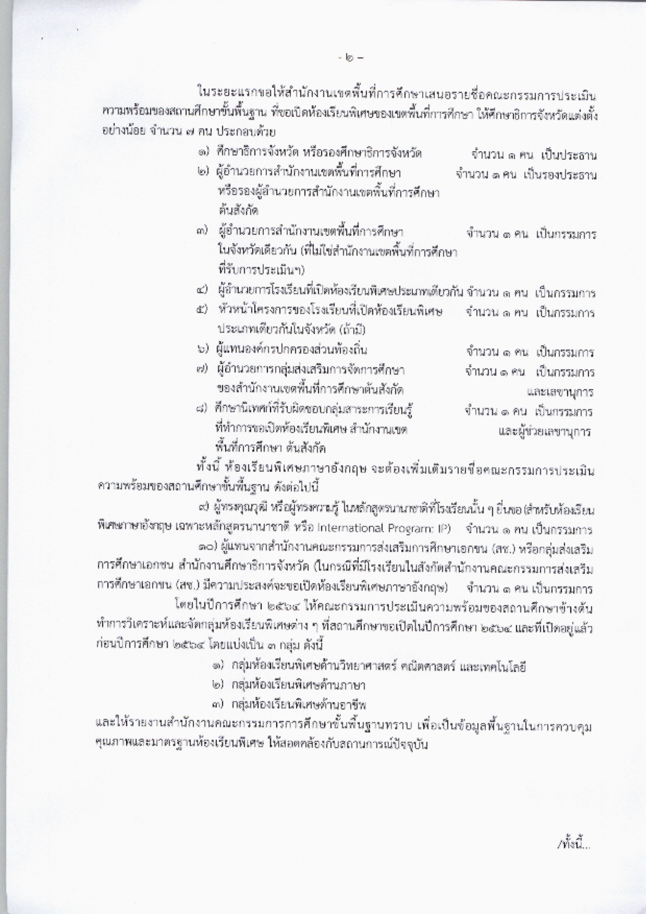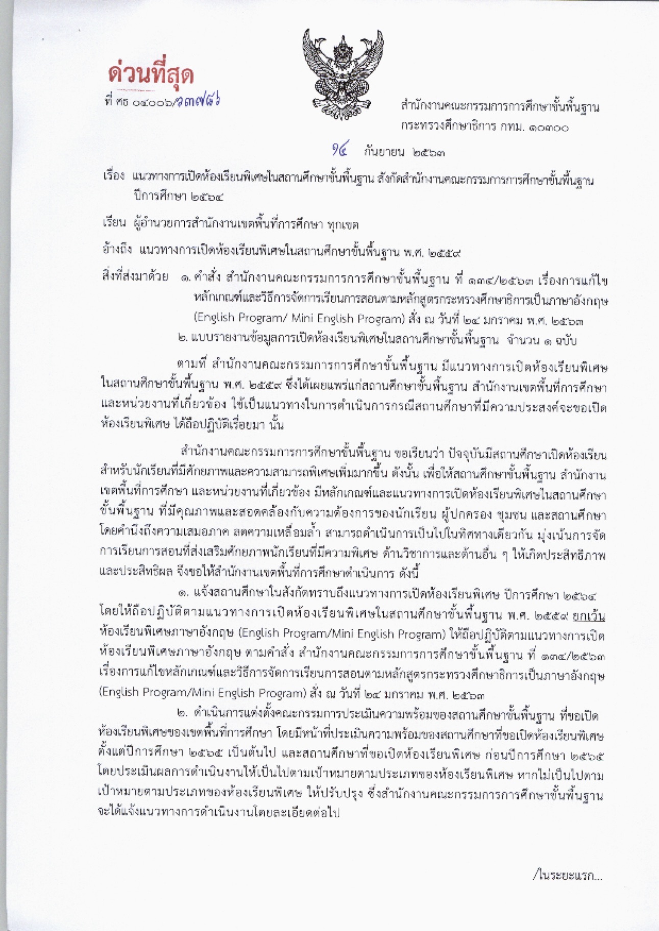 แนวทางการเปิดห้องเรียนพิเศษในสถานศึกษาขั้นพื้นฐาน สังกัดสำนักงานคณะกรรมการการศึกษาขั้นพื้นฐาน ปีการศึกษา 2564