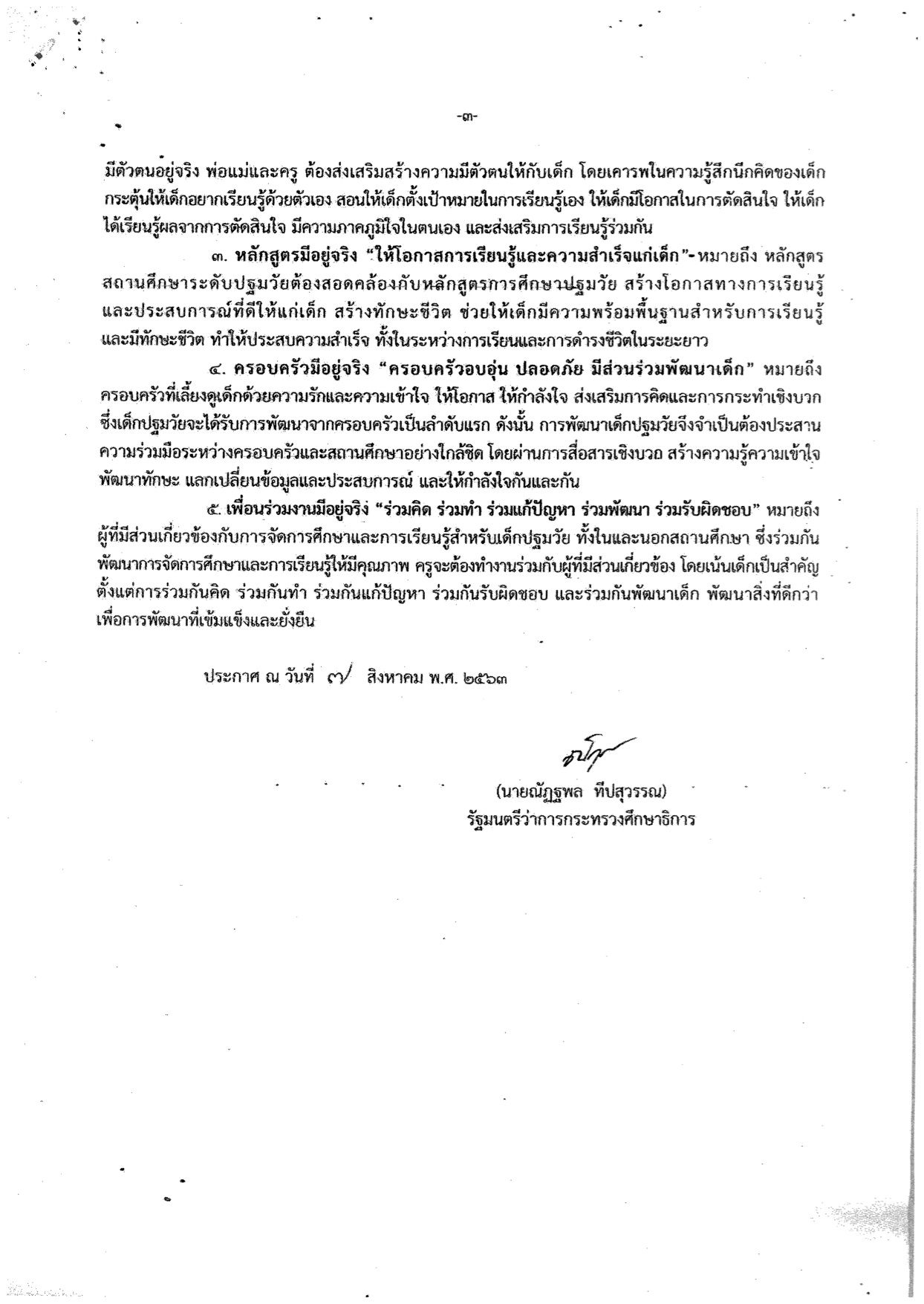 ประกาศกระทรวงศึกษาธิการ เรื่อง นโยบายและแนวปฏิบัติในการจัดการศึกษาและการเรียนรู้สำหรับเด็กปฐมวัย วันที่ 7 สิงหาคม 2563
