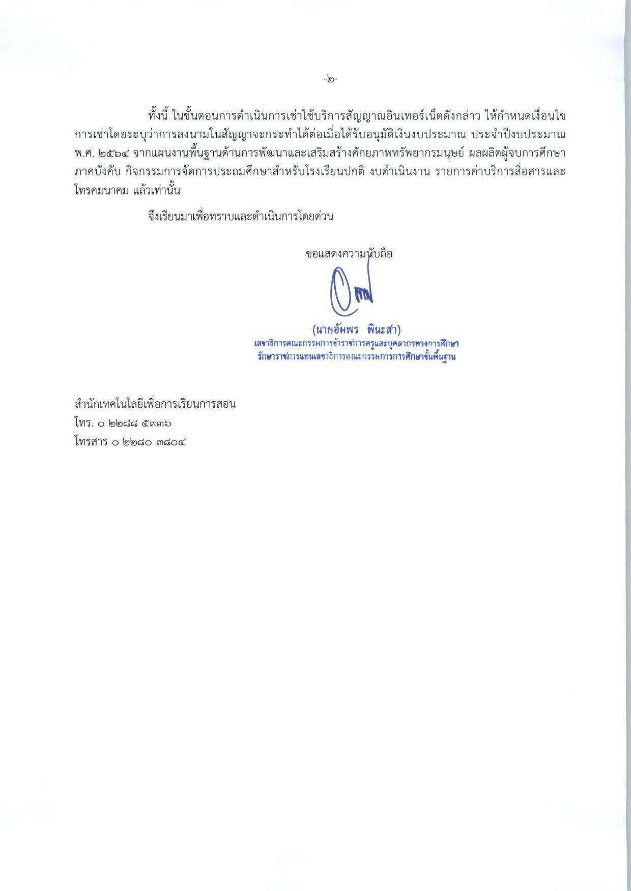การจัดสรรค่าเช่าใช้บริการสัญญาณอินเทอร์เน็ต ประจำปีงบประมาณ พ.ศ.2564