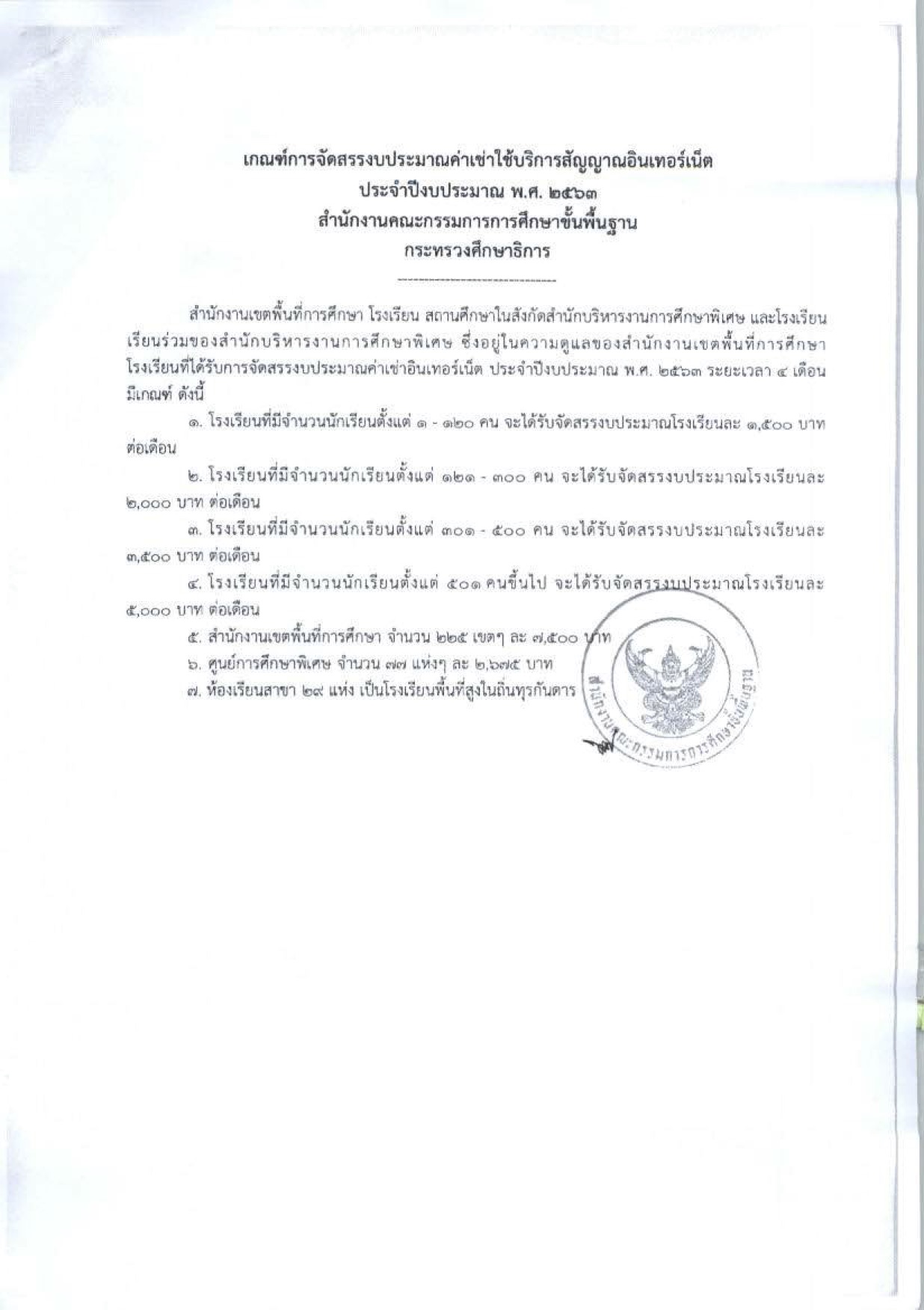 *** Download บัญชีจัดสรรงบประมาณค่าเช่าใช้บริการสัญญาณอินเทอร์เน็ต ปีงบประมาณ 2564 (ตุลาคม - ธันวาคม 2563)
