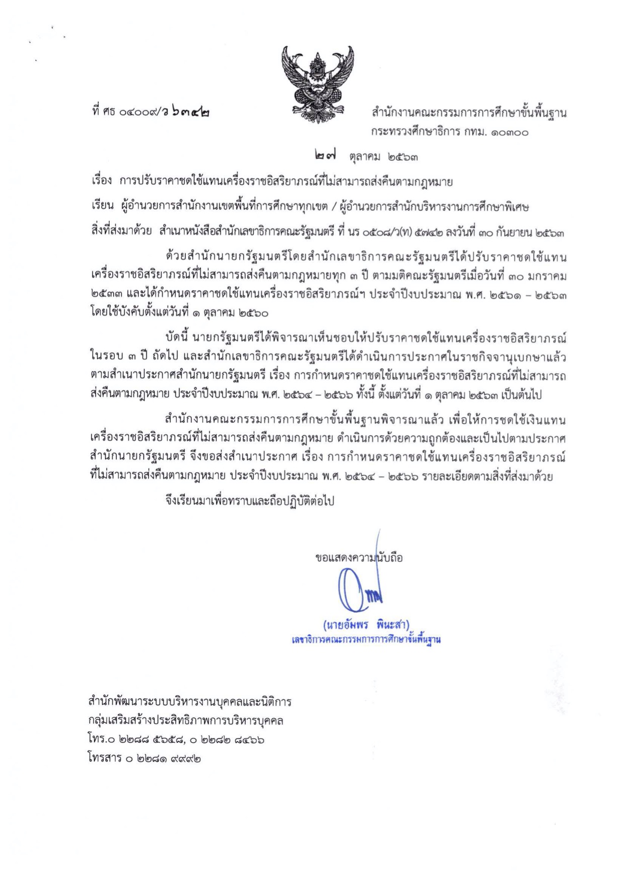 การปรับราคาชดใช้แทนเครื่องราชอิสริยาภรณ์ที่ไม่สามารถส่งคืนตามกฎหมาย