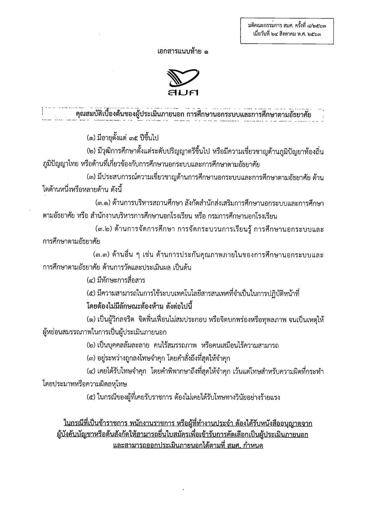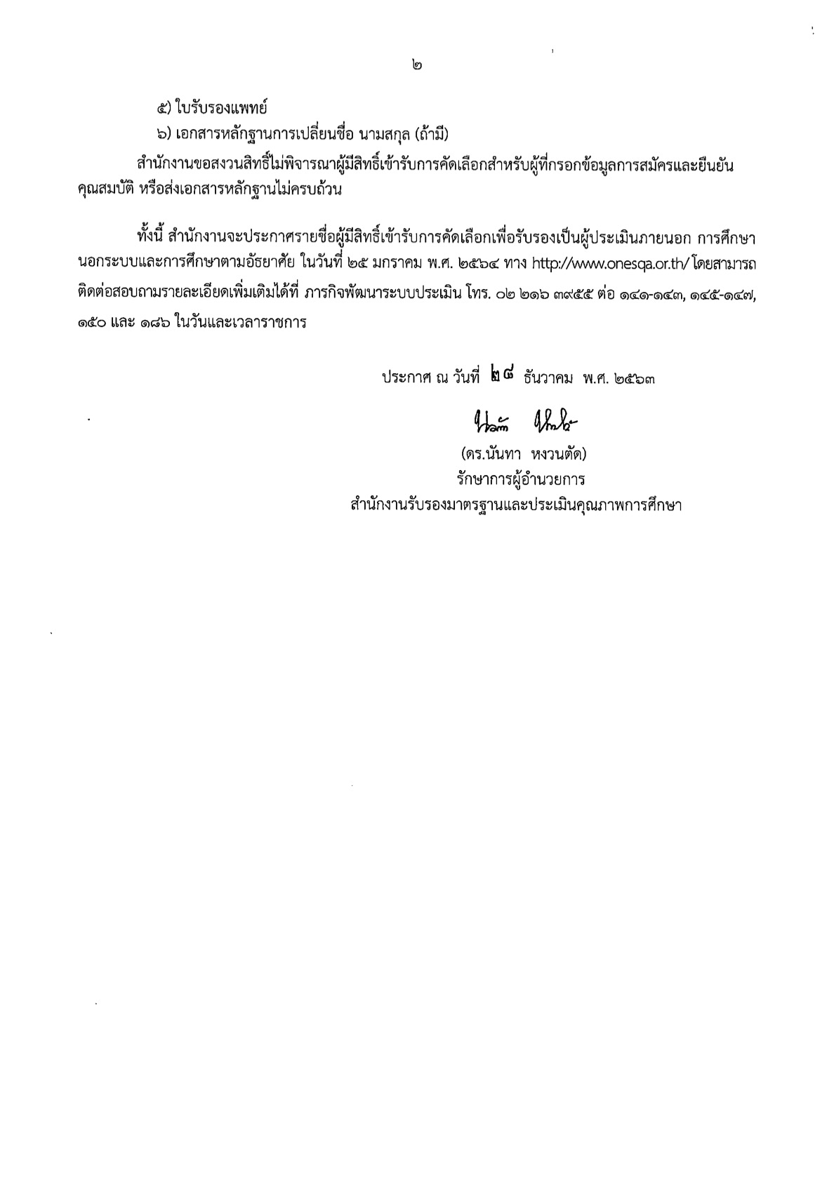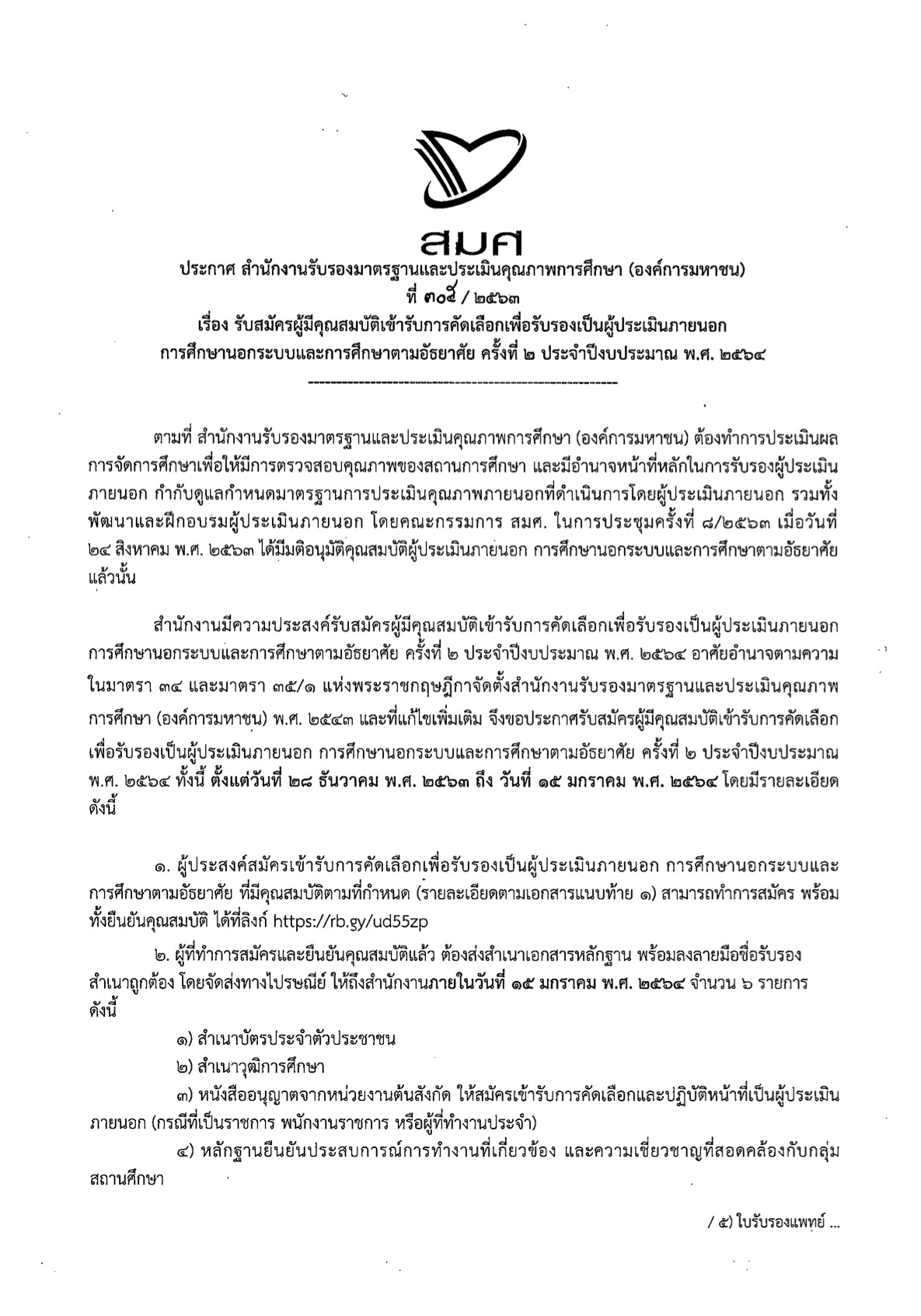 รับสมัครผู้มีคุณสมบัติเข้ารับการคัดเลือกเพื่อรับรองเป็นผู้ประเมินภายนอกการศึกษานอกระบบและการศึกษาตามอัธยาศัย ครั้งที่ 2 ประจำปีงบประมาณ พ.ศ.2564