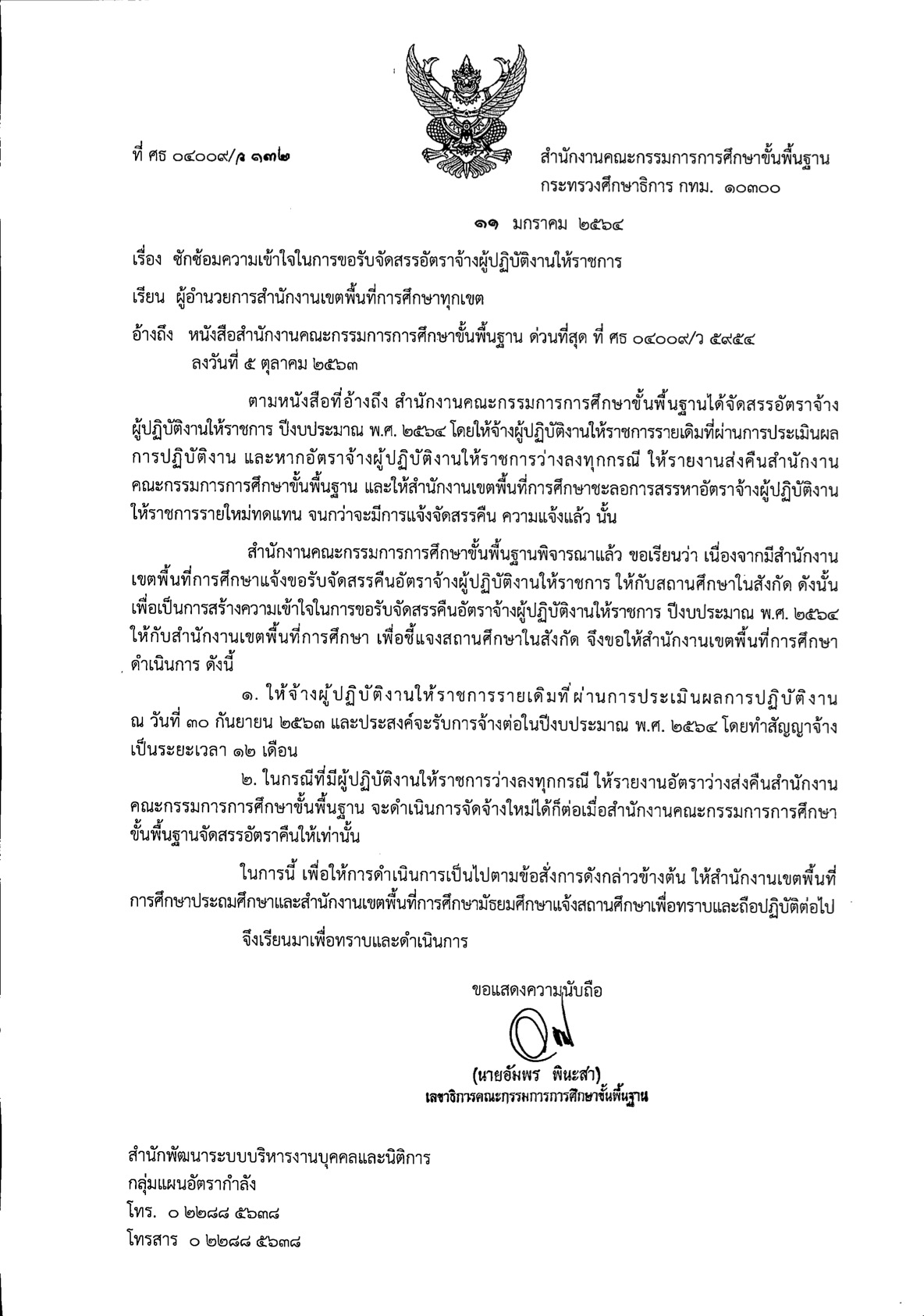 สำนักงานคณะกรรมการการศึกษาขั้นพื้นฐาน ซักซ้อมความเข้าใจในการขอรับจัดสรรอัตราจ้างผู้ปฏิบัติงานให้ราชการ