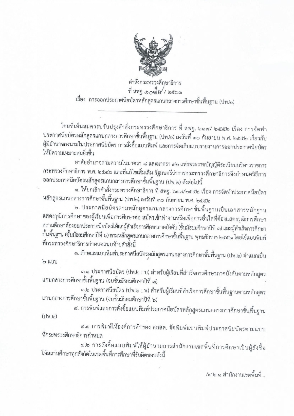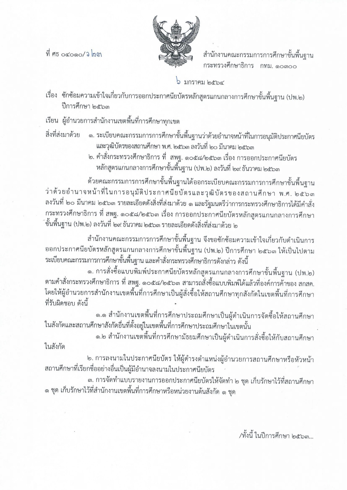 สำนักงานคณะกรรมการการศึกษาขั้นพื้นฐาน มีหนังสือแจ้ง เรื่อง ซักซ้อมความเข้าใจเกี่ยวกับการออกประกาศนียบัตรหลักสูตรแกนกลางการศึกษาขั้นพื้นฐาน (ปพ.2) ปีการศึกษา 2563 รายละเอียด ดังนี้