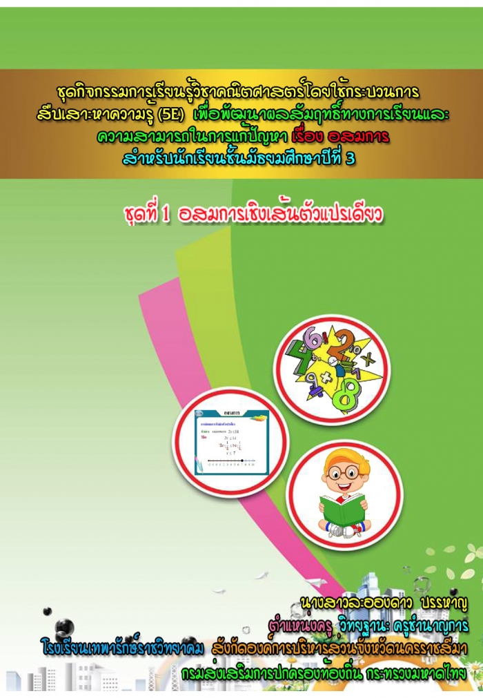 แบบฝึกทักษะคณิตศาสตร์เพื่อพัฒนาผลสัมฤทธิ์ทางการเรียน เรื่อง บทประยุกต์ ของนักเรียนชั้นประถมศึกษาปีที่ 6 ผลงานครูกรรณิกา นวโพธาสกุล