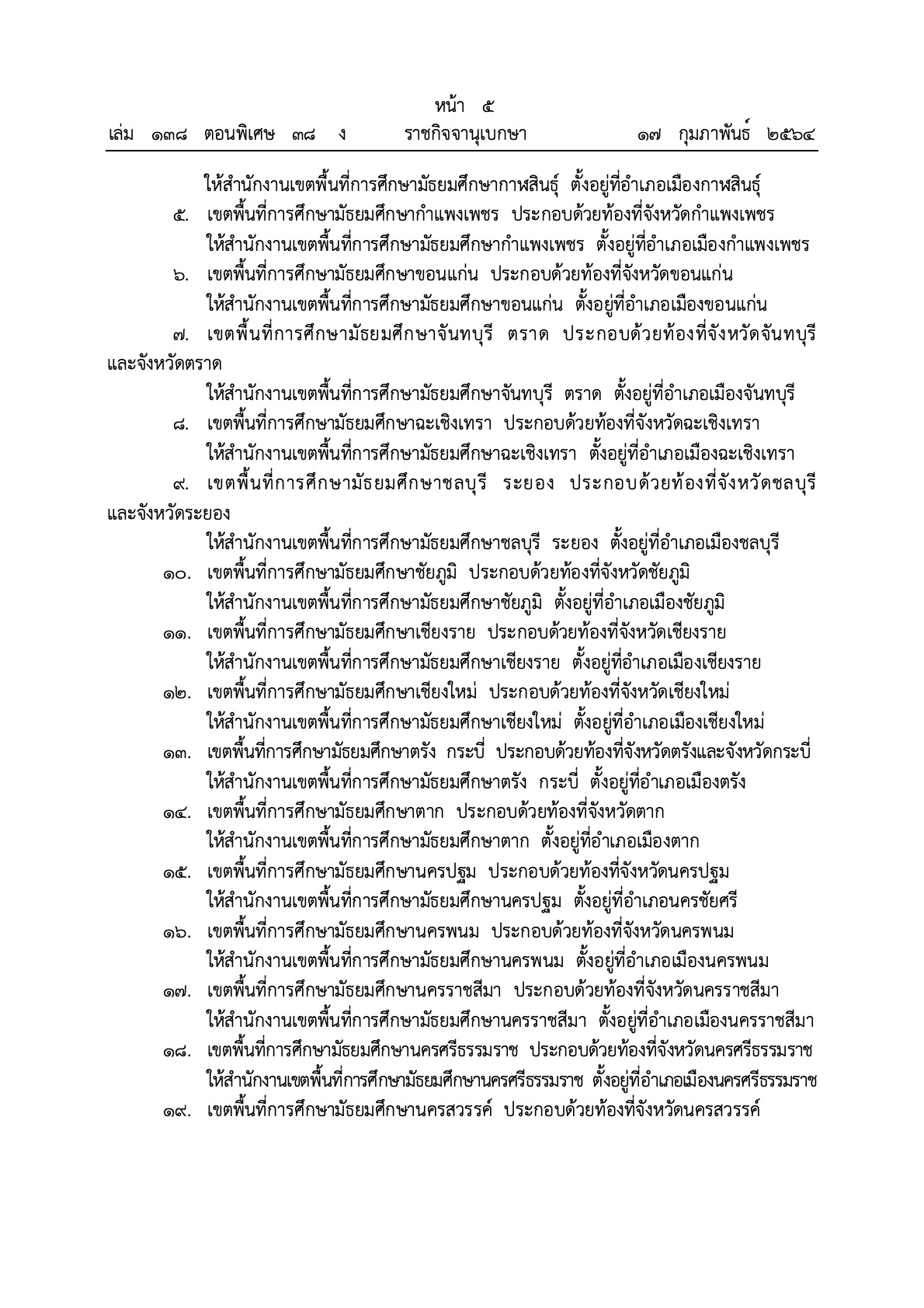 เมื่อวันที่ 17 กุมภาพันธ์ 2564 เว็บไซต์ราชกิจจานุเบกษา ได้เผยแพร่ ประกาศกระทรวงศึกษาธิการ เรื่อง การกำหนดและแก้ไขเปลี่ยนแปลงเขตพื้นที่การศึกษามัธยมศึกษา
