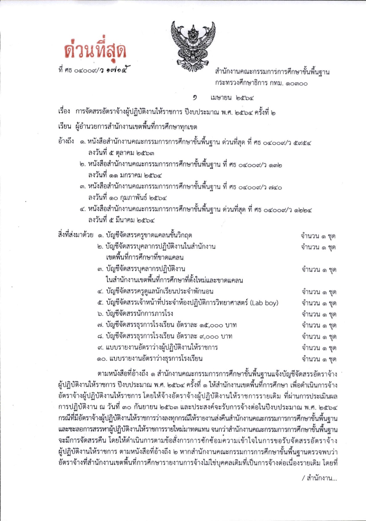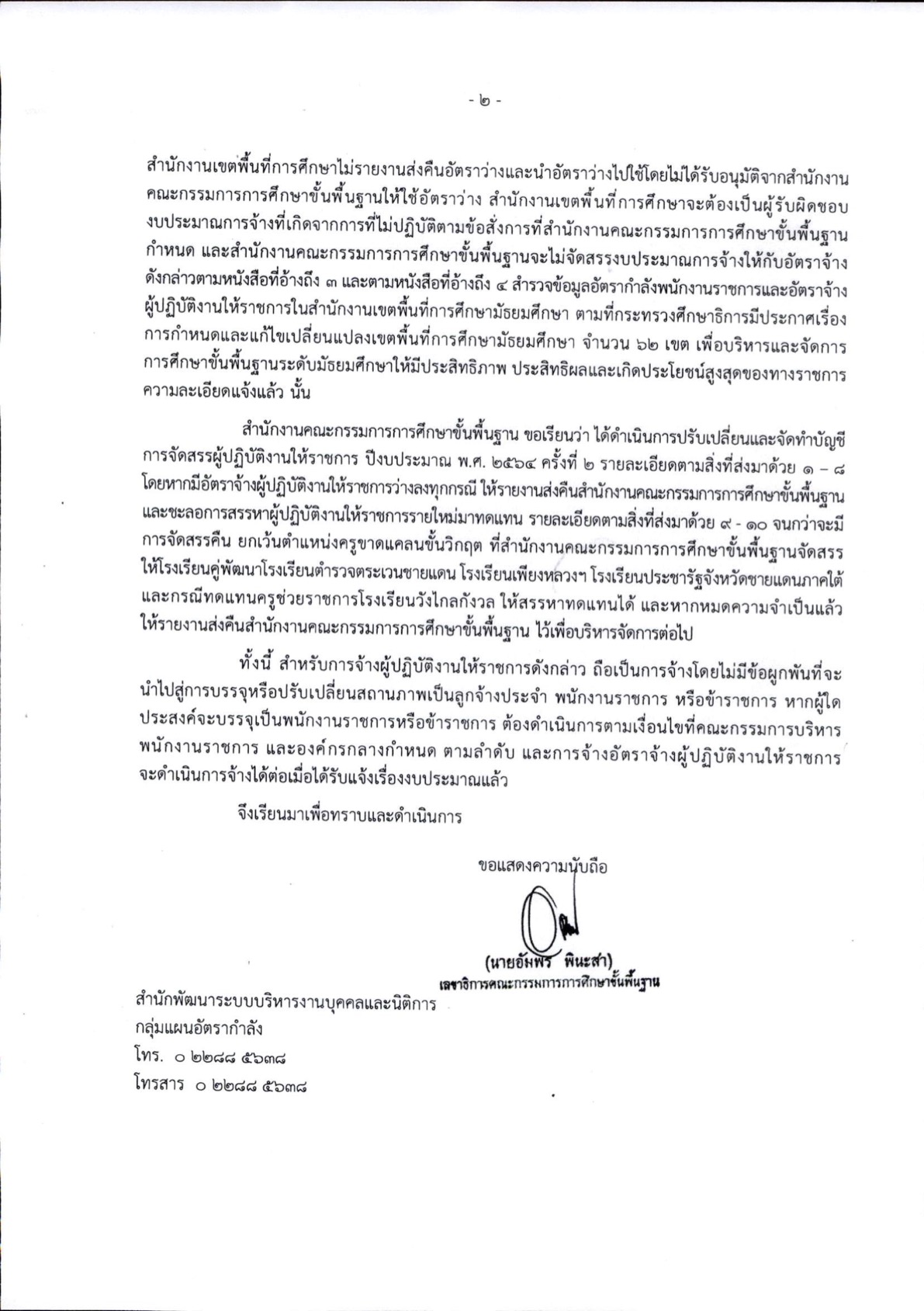 การจัดสรรอัตราจ้างผู้ปฏิบัติงานให้ราชการ ปีงบประมาณ พ.ศ. 2564 ครั้งที่ 2