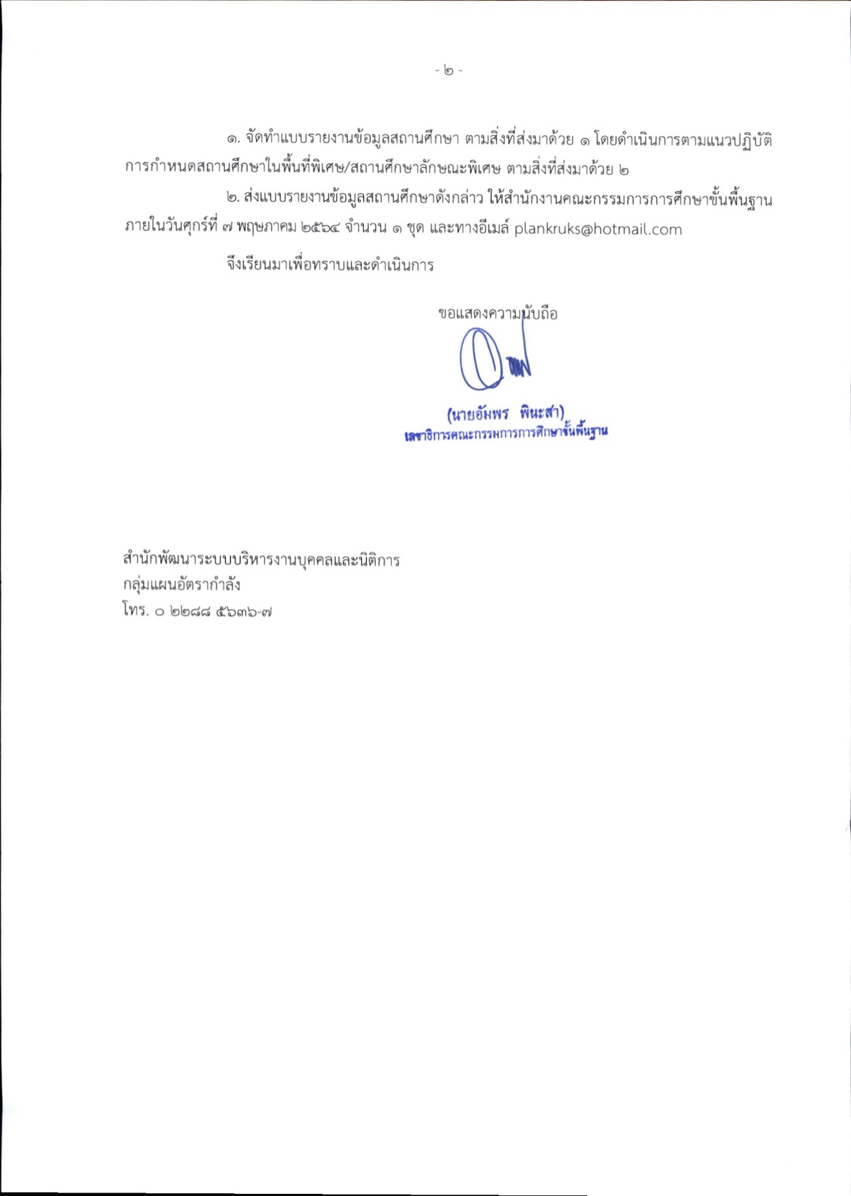 ด่วนที่สุด ที่ ศธ 04009/ว1988 สำรวจข้อมูลสถานศึกษา