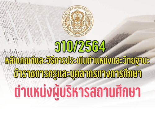 ว10/2564 หลักเกณฑ์และวิธีการประเมินตำแหน่งและวิทยฐานะข้าราชการครูและบุคลากรทางการศึกษา ตำแหน่งผู้บริหารสถานศึกษา
