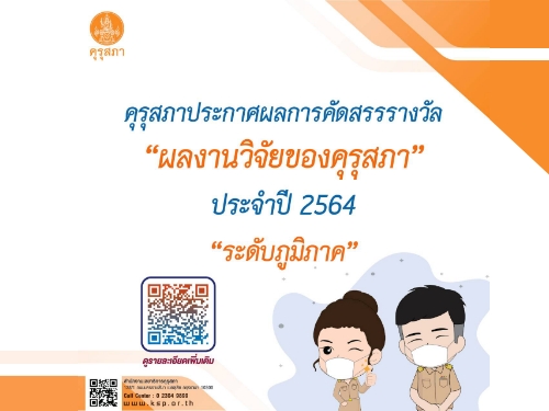 ดร.ดิศกุล เกษมสวัสดิ์ เลขาธิการคุรุสภา กล่าวว่า ตามที่สำนักงานเลขาธิการคุรุสภาได้ประชาสัมพันธ์เชิญชวนให้ผู้ประกอบวิชาชีพทางการศึกษาส่งผลงานวิจัยเข้าร่วมคัดสรรรางวัล “ผลงานวิจัยของคุรุสภา” ประจำปี 2564 นั้น บัดนี้การคัดสรรรางวัล “ผลงานวิจัยของคุรุสภา” ประจำปี 2564 “ระดับภูมิภาค” ได้เสร็จสิ้นแล้ว มีผลงานวิจัยที่ผ่านการคัดสรรรางวัล “ผลงานวิจัยของคุรุสภา” ประจำปี 2564 “ระดับภูมิภาค” ดังนี้ รางวัลผลงานวิจัย “ระดับดีเด่น” จำนวน 8 รางวัล “ระดับดี” จำนวน 3 รางวัล และ “ระดับชมเชย” จำนวน 20 รางวัล