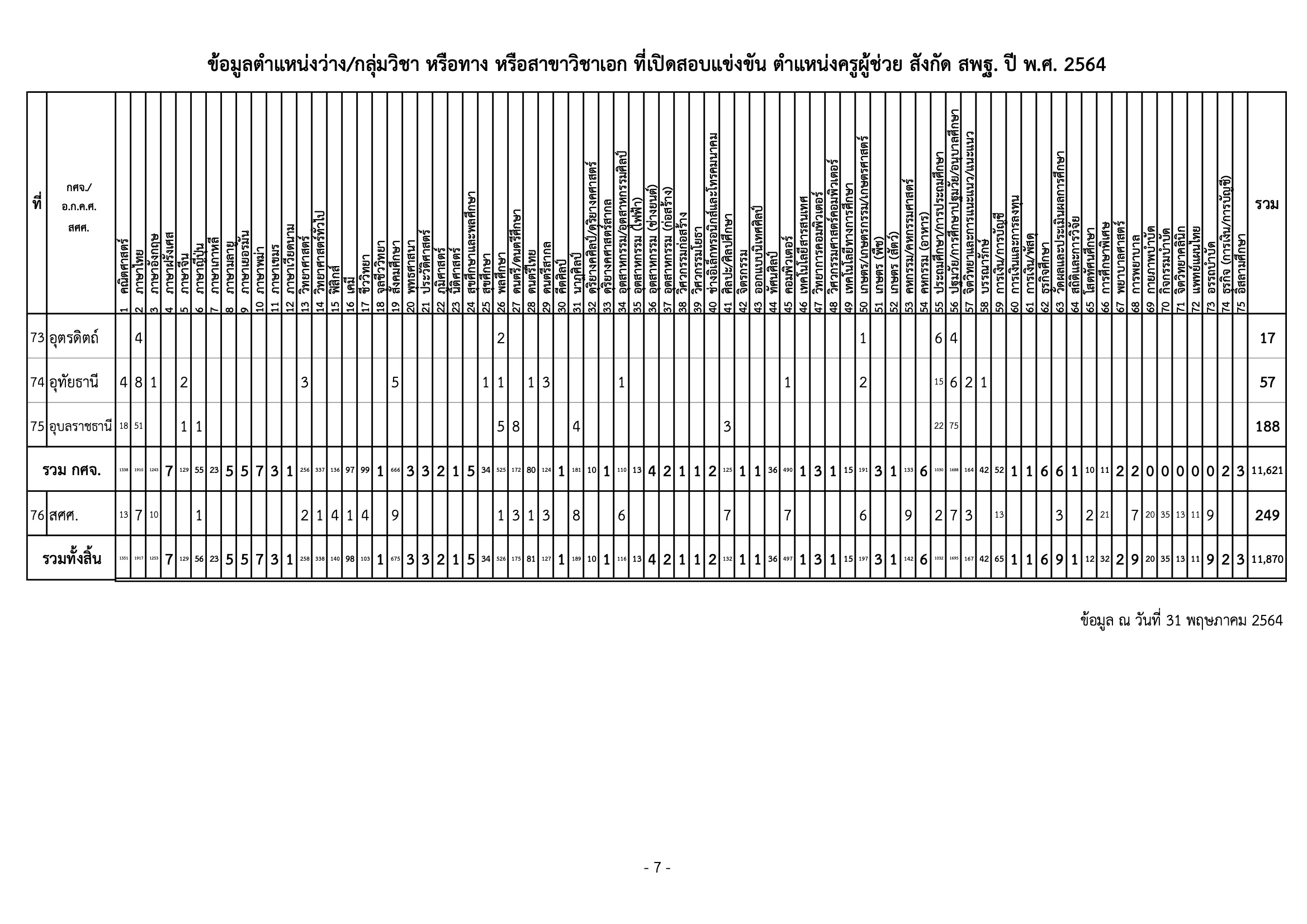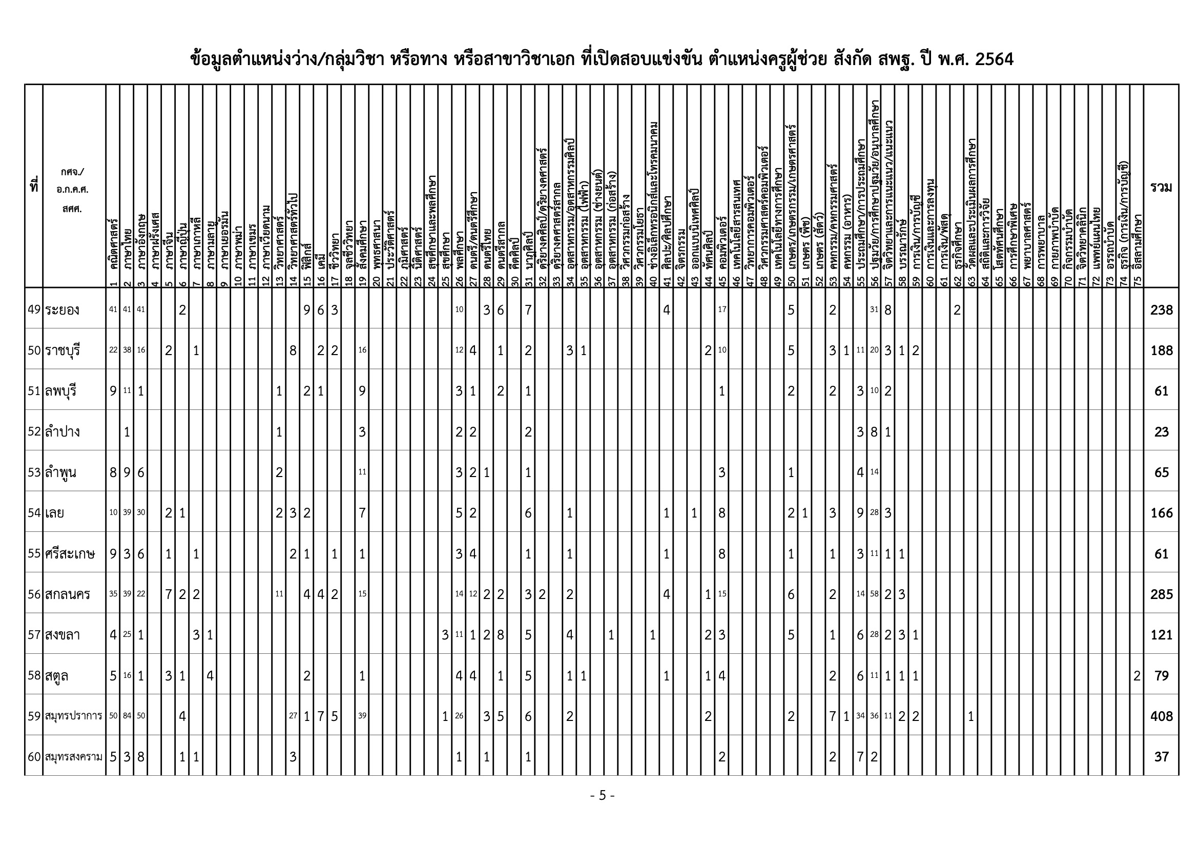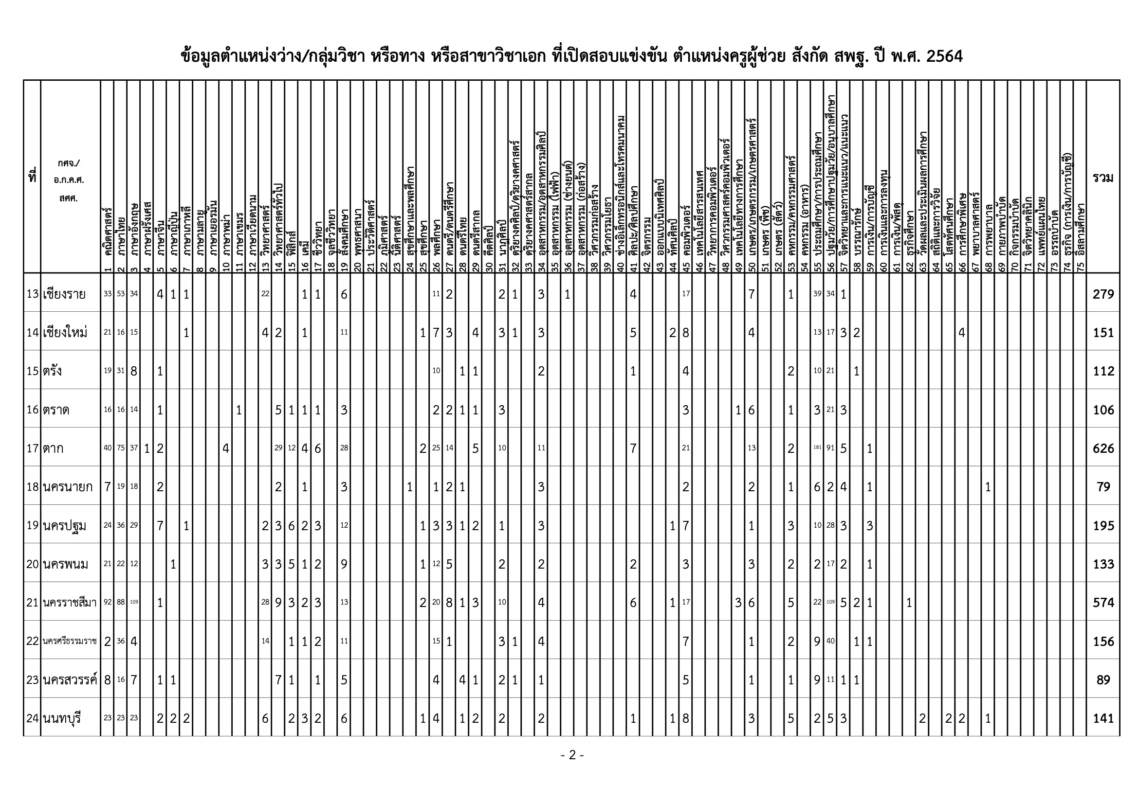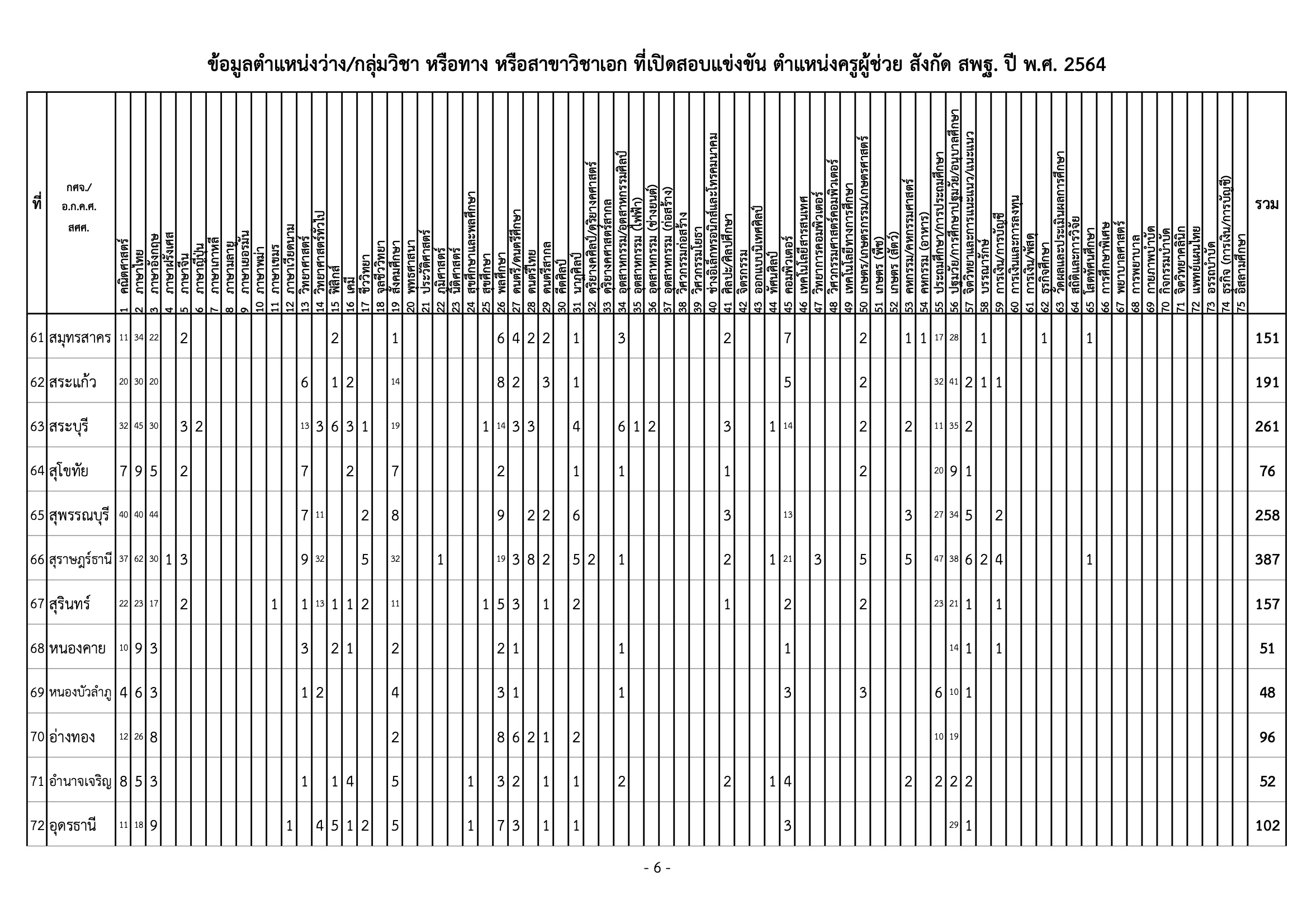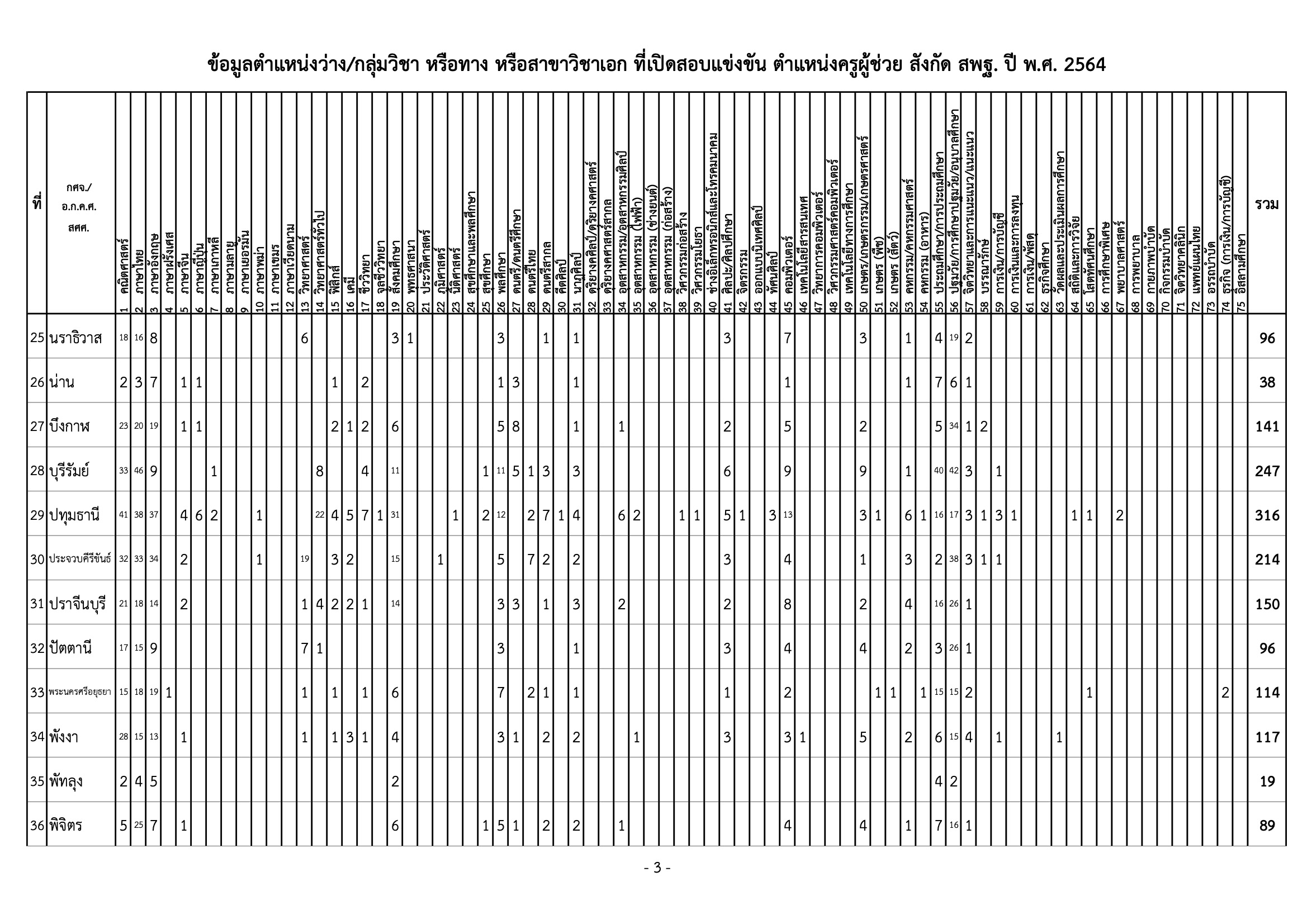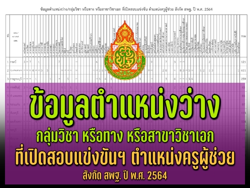 สำนักงานคณะกรรมการการศึกษาขั้นพื้นฐาน เผยแพร่ข้อมูลตำแหน่งว่าง กลุ่มวิชา หรือทาง หรือสาขาวิชาเอก ที่เปิดสอบแข่งขันฯ ตำแหน่งครูผู้ช่วย สังกัด สพฐ. ปี พ.ศ. 2564