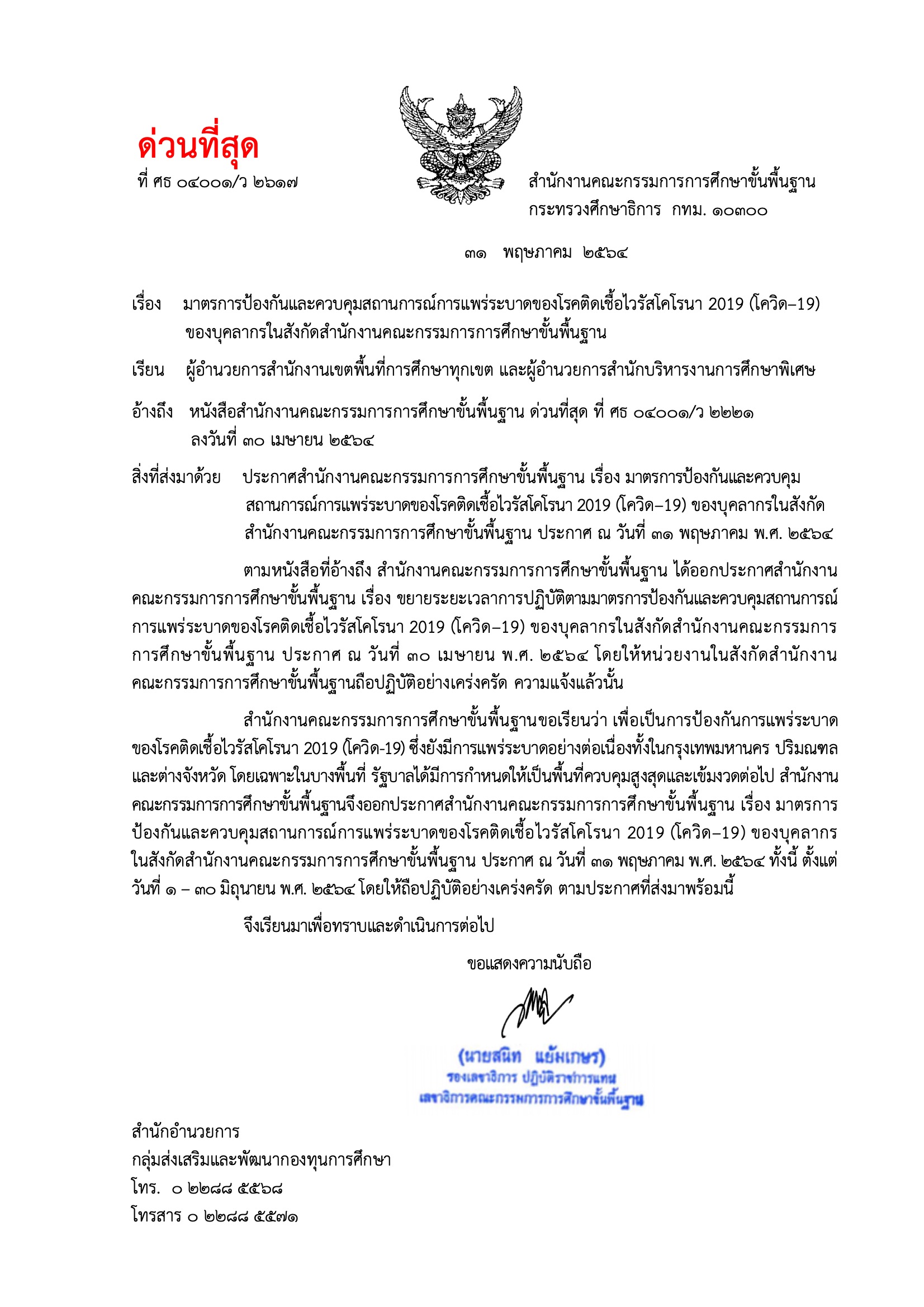 ที่มา สำนักงานคณะกรรมการการศึกษาขั้นพื้นฐาน วันที่ 31 พฤษภาคม 2564