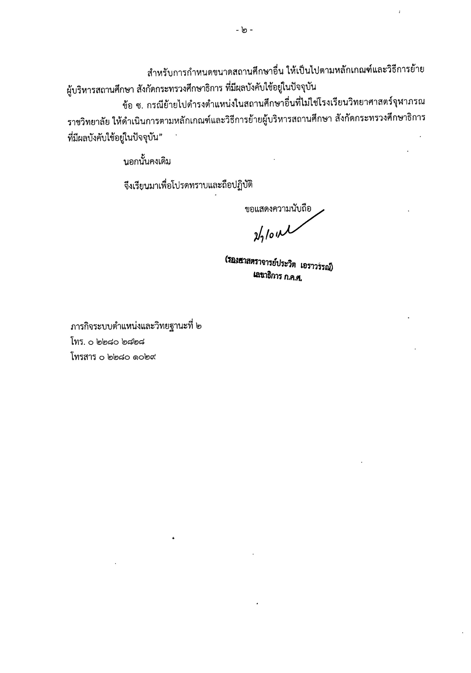 ว15/2564 การปรับปรุงหลักเกณฑ์และวิธีการย้ายผู้บริหารสถานศึกษา โรงเรียนวิทยาศาสตร์จุฬาภรณราชวิทยาลัย