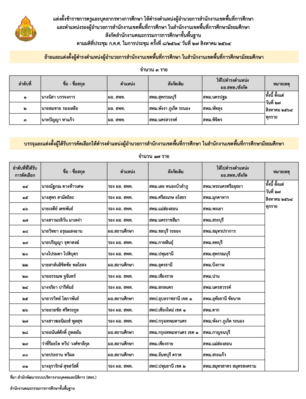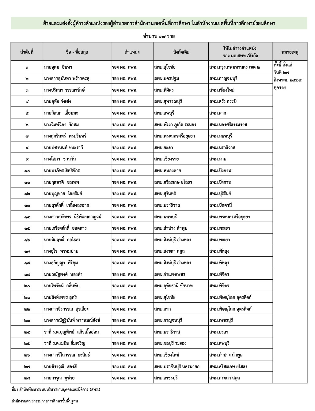 >>> การย้ายและการบรรจุ ผอ.สพม. และรอง ผอ.สพม.