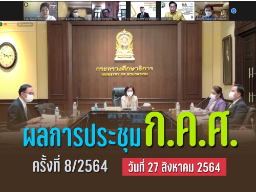 ผลการประชุมคณะกรรมการข้าราชการครูและบุคลากรทางการศึกษา (ก.ค.ศ.) ครั้งที่ 8/2564 ในวันศุกร์ที่ 27 สิงหาคม 2564 โดยมีนางสาวตรีนุช เทียนทอง รัฐมนตรีว่าการกระทรวงศึกษาธิการ เป็นประธาน ซึ่งที่ประชุมได้มีการพิจารณาเรื่องที่เกี่ยวข้องกับการบริหารงานบุคคลของข้าราชการครูและบุคลากรทางการศึกษา และมีมติที่สำคัญ ดังนี้