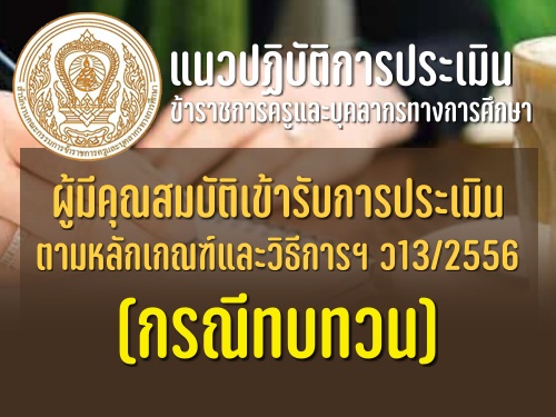 แนวปฏิบัติการประเมินข้าราชการครูและบุคลากรทางการศึกษาผู้มีคุณสมบัติเข้ารับการประเมิน ตามหลักเกณฑ์และวิธีการฯ ว13/2556 (กรณีทบทวน)