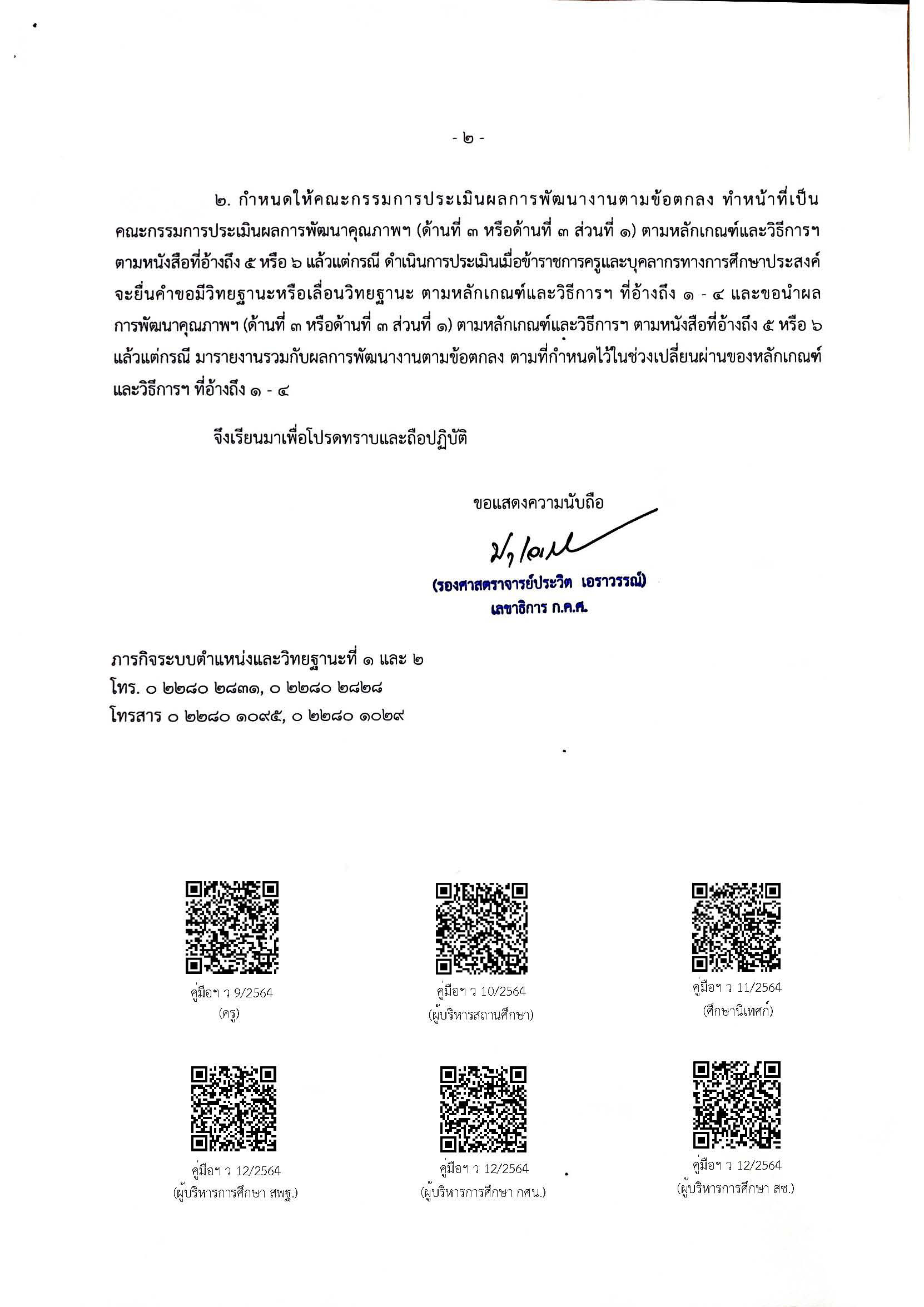 ว22/2564 การกำหนดตัวชี้วัด รายละเอียดประกอบหลักเกณฑ์ฯ และคู่มือการดำเนินการตามหลักเกณฑ์และวิธีการประเมินตำแหน่งและวิทยฐานะข้าราชการครูและบุคลากรฯ