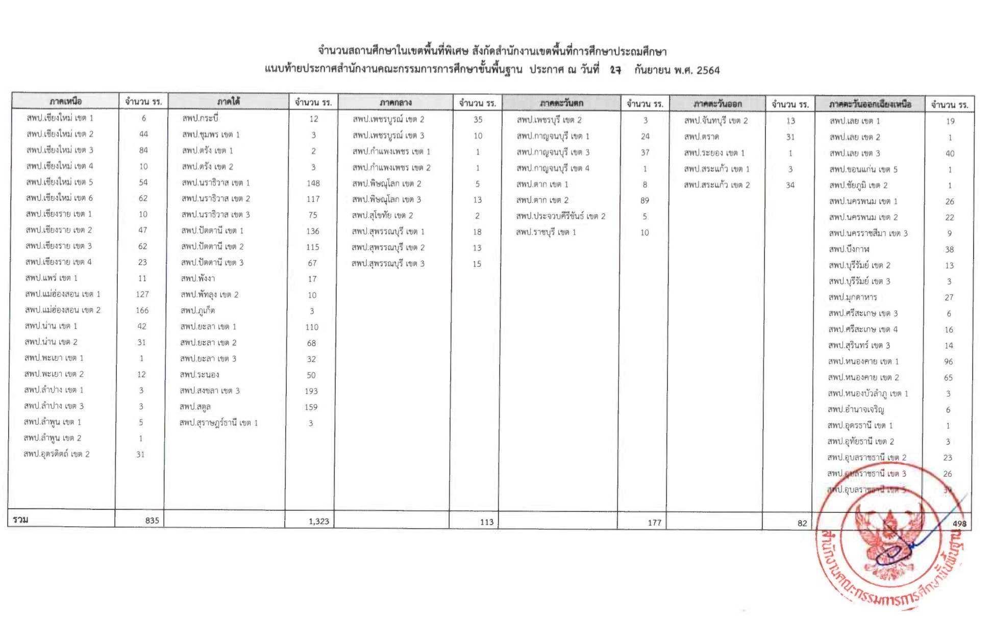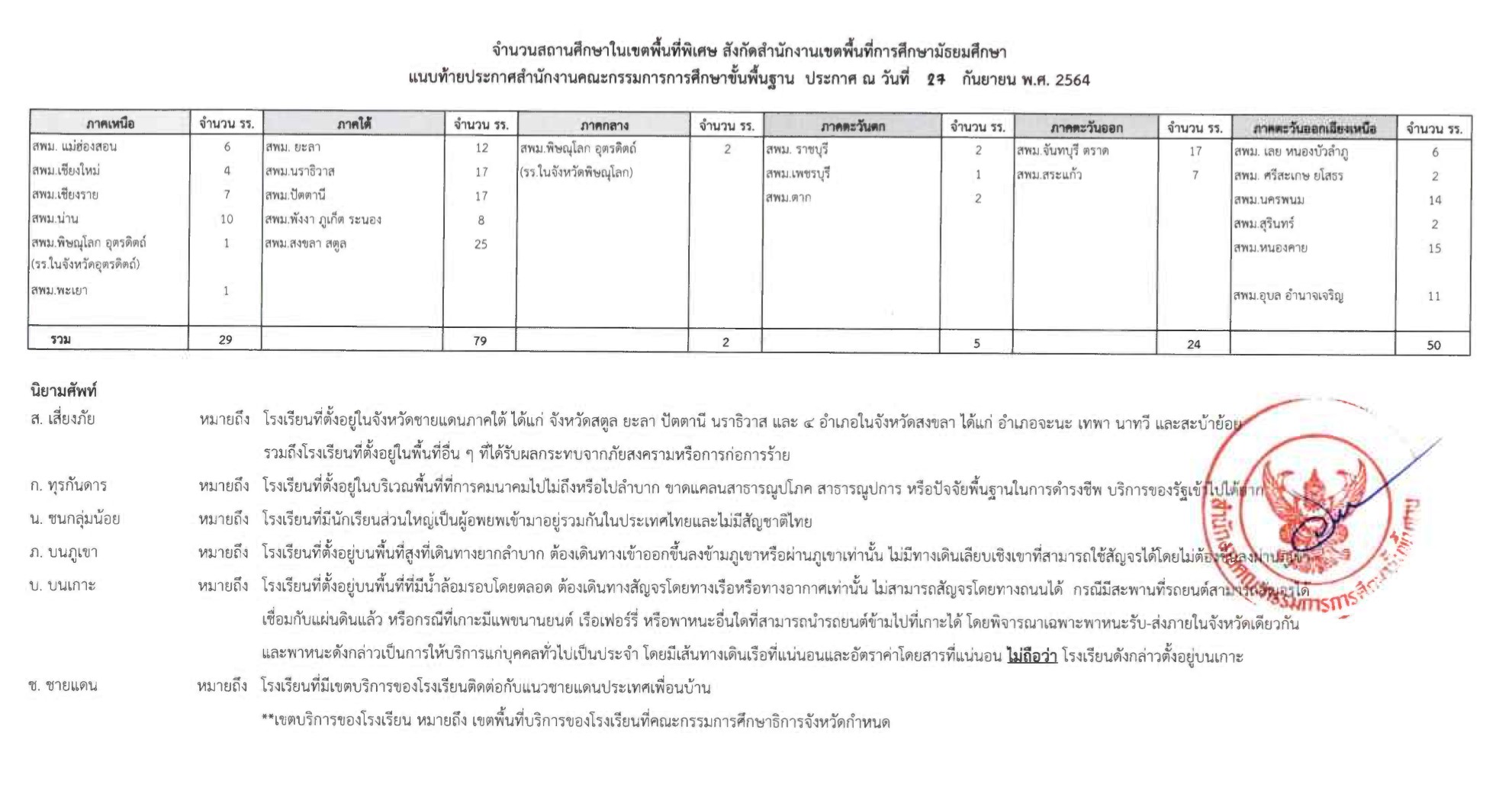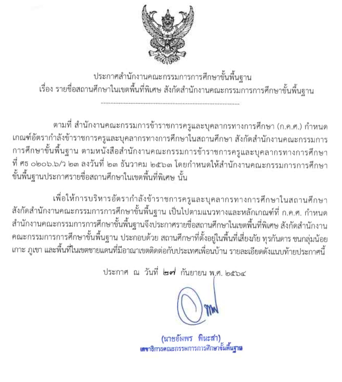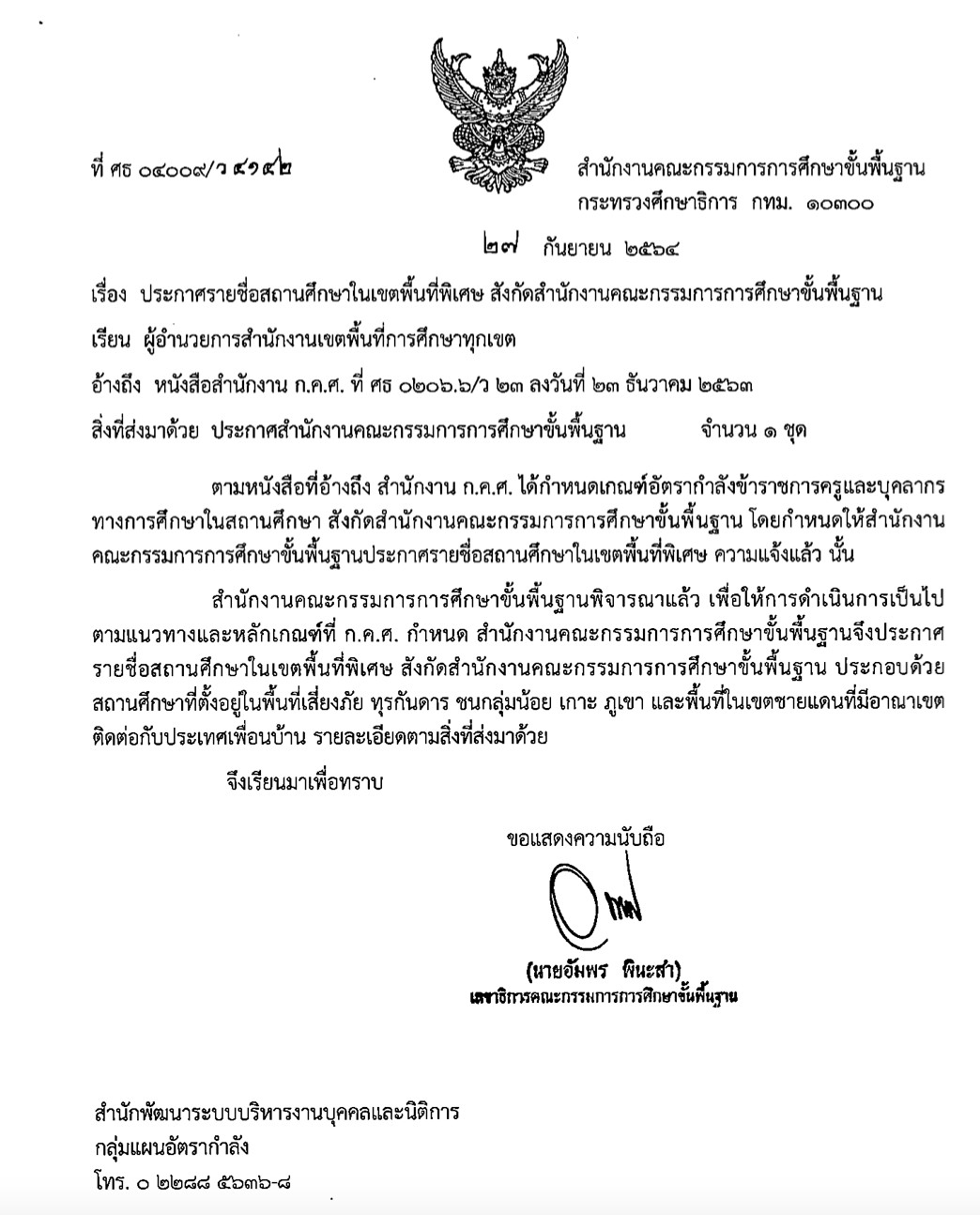 ที่ ศธ 04009/ว 4142 ประกาศรายชื่อสถานศึกษาในเขตพื้นที่พิเศษ สังกัดสำนักงานคณะกรรมการการศึกษาขั้นพื้นฐาน