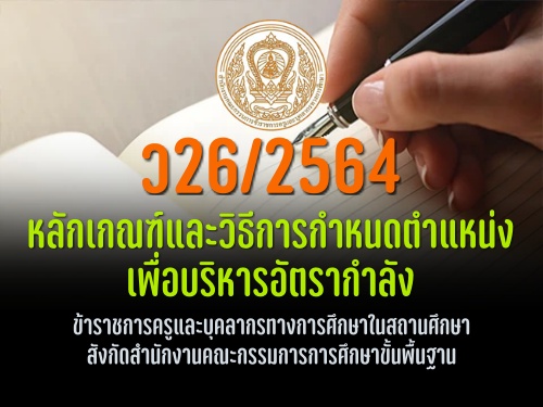 ว26/2564 หลักเกณฑ์และวิธีการกำหนดตำแหน่งเพื่อบริหารอัตรากำลังข้าราชการครูและบุคลากรทางการศึกษาในสถานศึกษา สังกัดสำนักงานคณะกรรมการการศึกษาขั้นพื้นฐาน